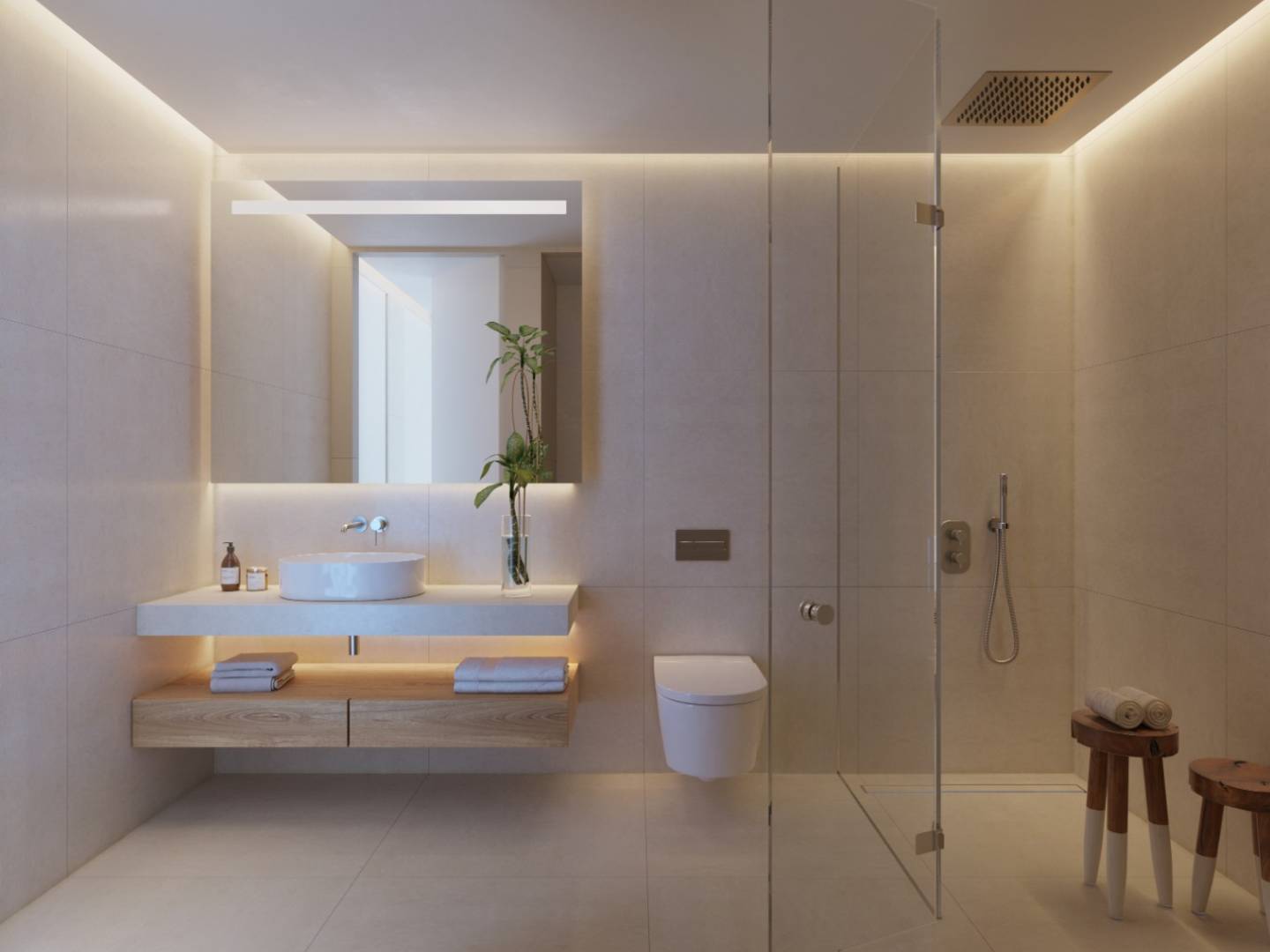 Es gibt 10 Wohnungen mit direktem Blick auf den Dorfplatz, den Strand und das Meer. Diese Wohnungen, Typ A und B, haben drei Schlafzimmer und zwei Badezimmer. Die Penthäuser Typ A und B haben auch direkten Zugang zu einer eigenen privaten Dachterrasse von 80 m2 mit Panoramablick.
