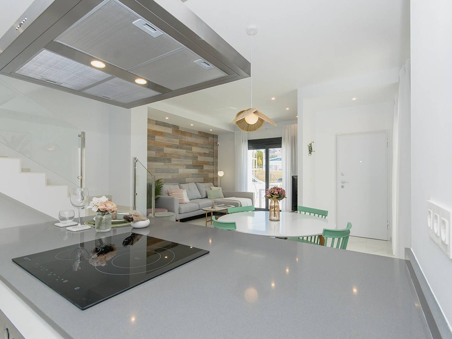 Im Erdgeschoss verfügt es über ein großes Wohn-Esszimmer und eine offene Küche, 1 Schlafzimmer mit Einbauschrank, 1 komplettes Badezimmer und eine überdachte Terrasse.