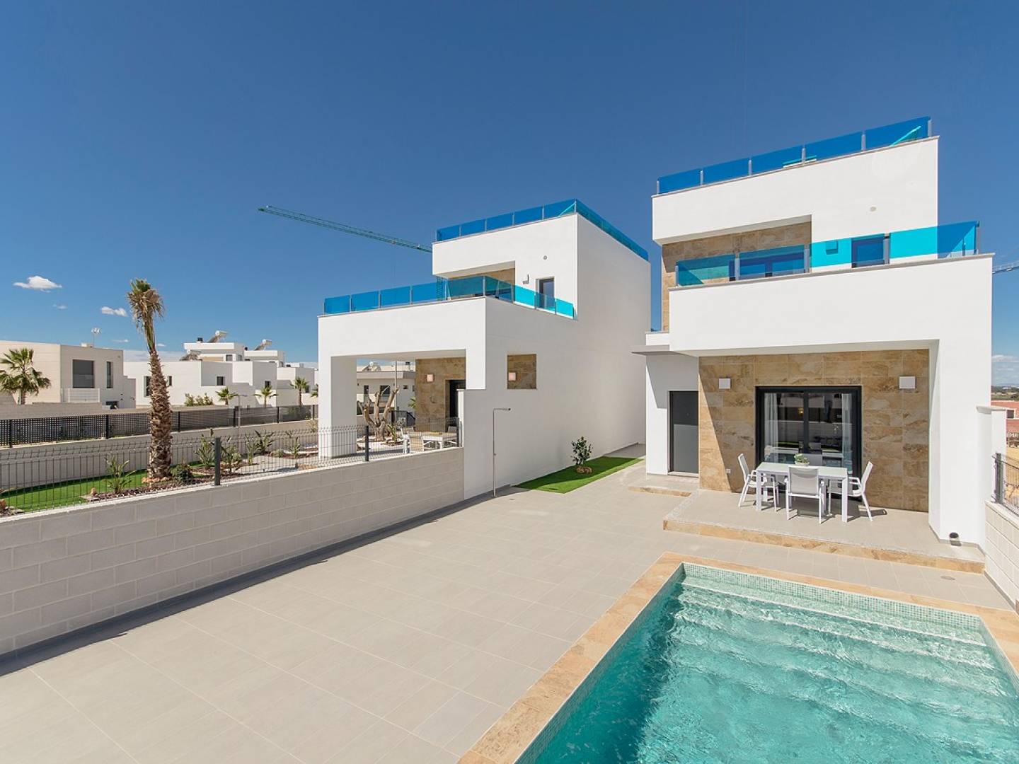 Die Standardqualitäten und -ausführungen dieses Neubaus sind ausgezeichnet: Alle Häuser verfügen über automatische Jalousien, Fußbodenheizung in allen Badezimmern, Vorinstallation einer Kanalklimaanlage, Hydromassagesäule im Hauptbadezimmer und eine Energieeffizienzzertifizierung der Klasse A.
