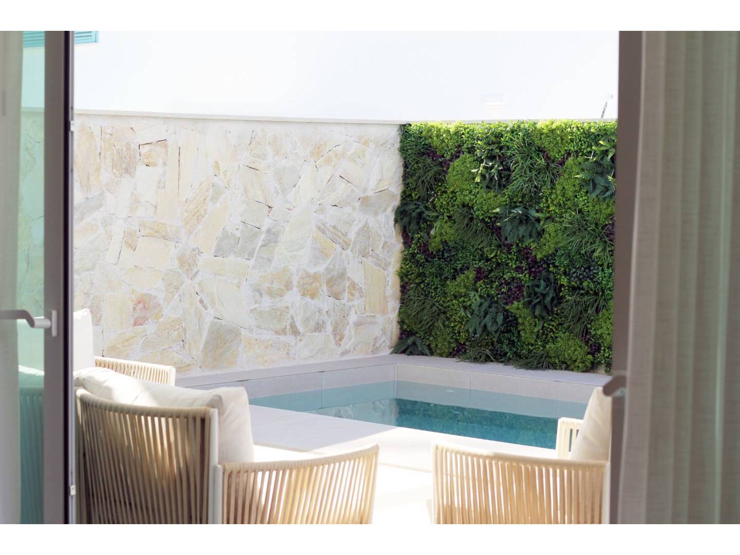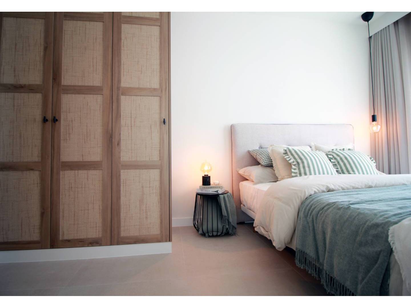 Hier können Sie zwischen einem Erdgeschoss mit Garten und einem ersten Stock mit Solarium wählen, hochwertig gebaut und von sehr guter Qualität. Alle Wohnungen verfügen über einen offenen Raum zwischen Wohnzimmer und Küche. Sie verfügen über einen eigenen privaten Swimmingpool und einen Parkplatz.