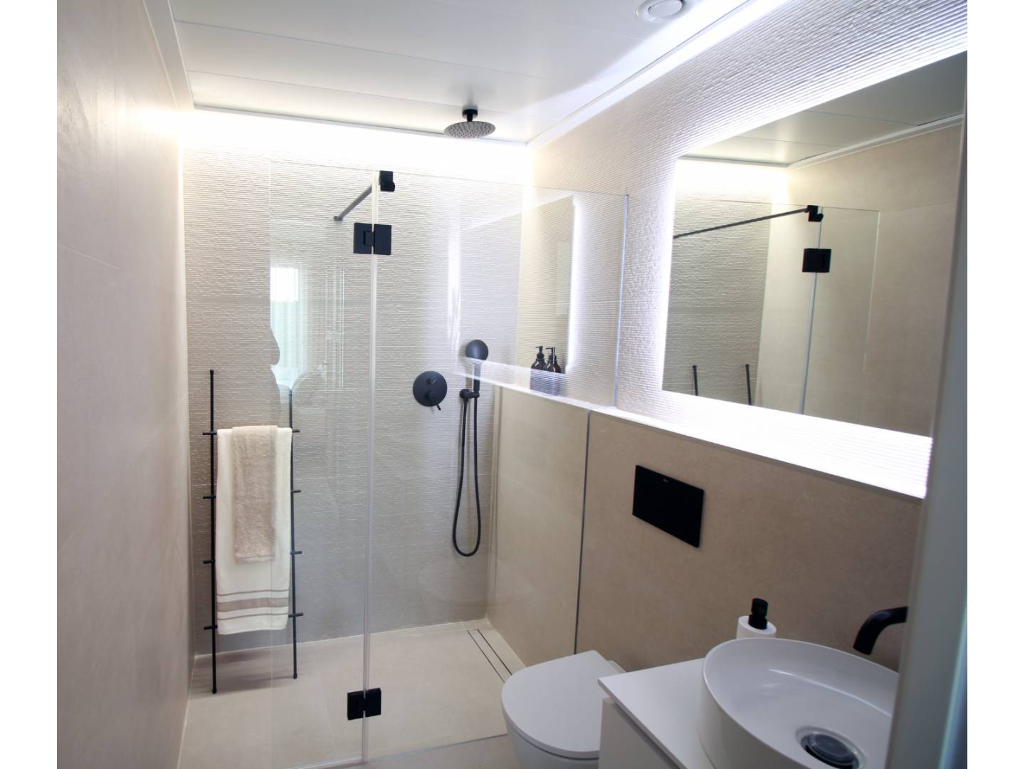 Dieser Bungalow befindet sich im Erdgeschoss und verfügt über 3 Schlafzimmer und 2 Badezimmer . Es verfügt über einen fantastischen Swimmingpool und Zugang von der Küche zu einer großen Terrasse. Der Bungalow verfügt über eine Küche, die in zwei Farben Ihrer Wahl ausgestattet ist. Auf der Außenterrasse gibt es eine Dusche.