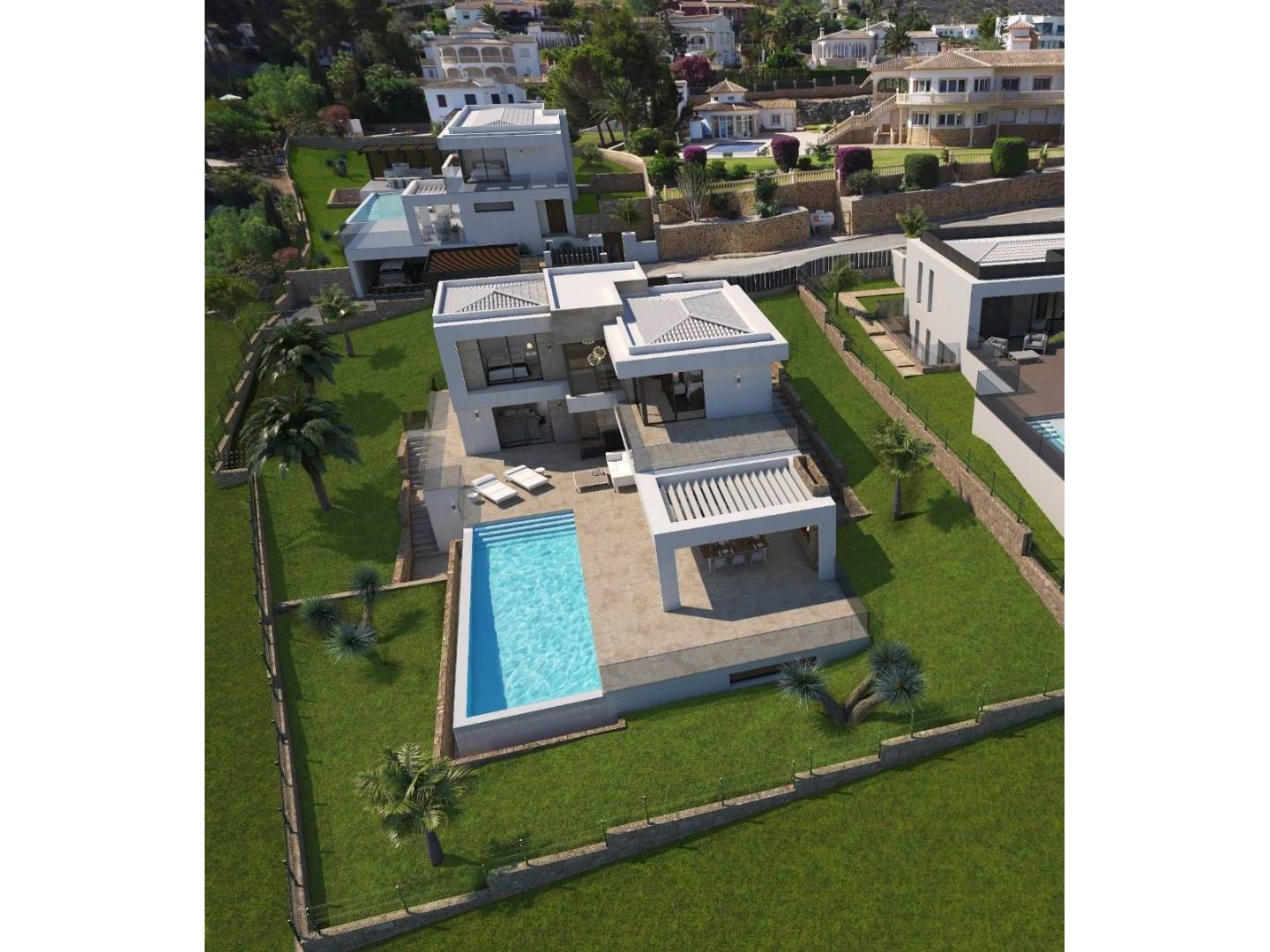 Six Seconds Properties bietet Ihnen auf einem 1070m² großen Grundstück mit leichter Hanglage diese moderne Villa in exklusiver Lage mit herrlichem Blick auf das Mittelmeer und die Berge.