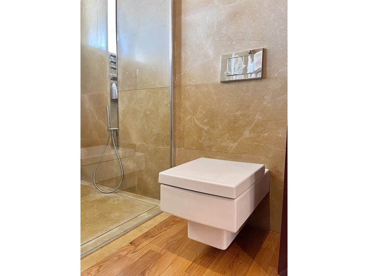 Was die Heizungs- und Klimaanlagen betrifft, verfügt das Anwesen über ein gemischtes System aus Fußbodenheizung und Fancoil für die Klimaanlage, die alle über die in jedem Raum installierten Thermostate und über die App auf dem tragbaren Telefon gesteuert werden. Für die Heizung sind auf dem Dachboden Solarpaneele installiert.
