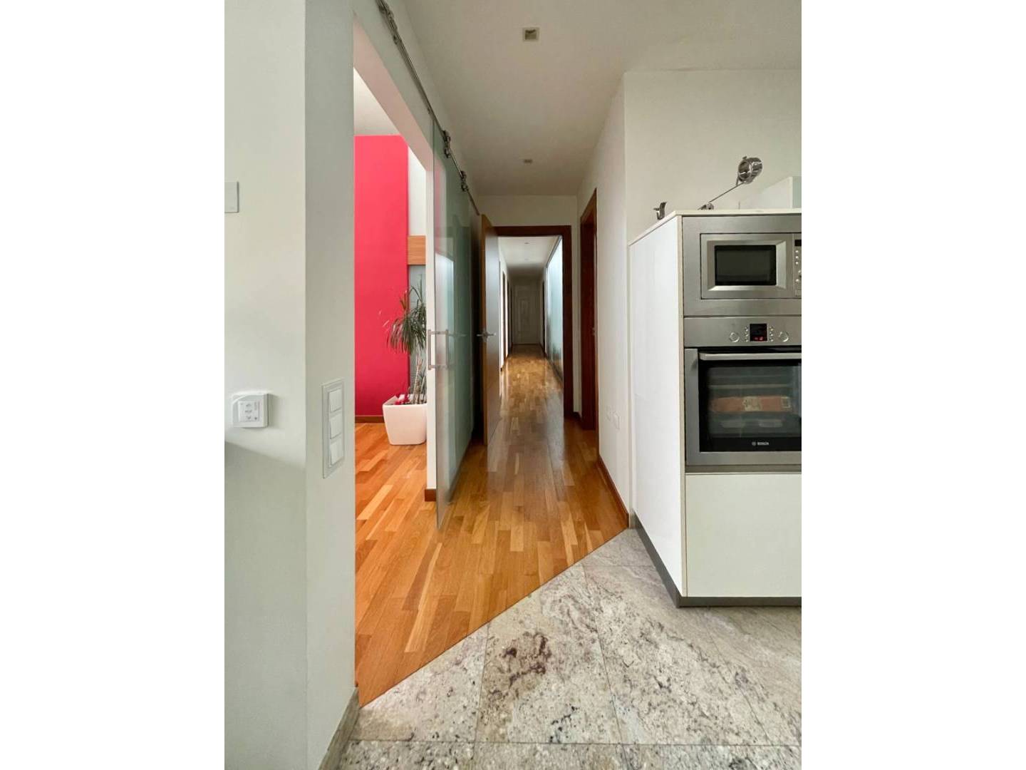 Wir präsentieren eine luxuriös renovierte Villa mit einer Wohnfläche von 325 Quadratmetern, die sich auf einem Grundstück von 400 Quadratmetern befindet. Dieses wunderbare Anwesen wurde mit hochwertigen Materialien wie natürlichem Travertinstein und Eichenparkett gestaltet, was ihm eine elegante und anspruchsvolle Note verleiht.