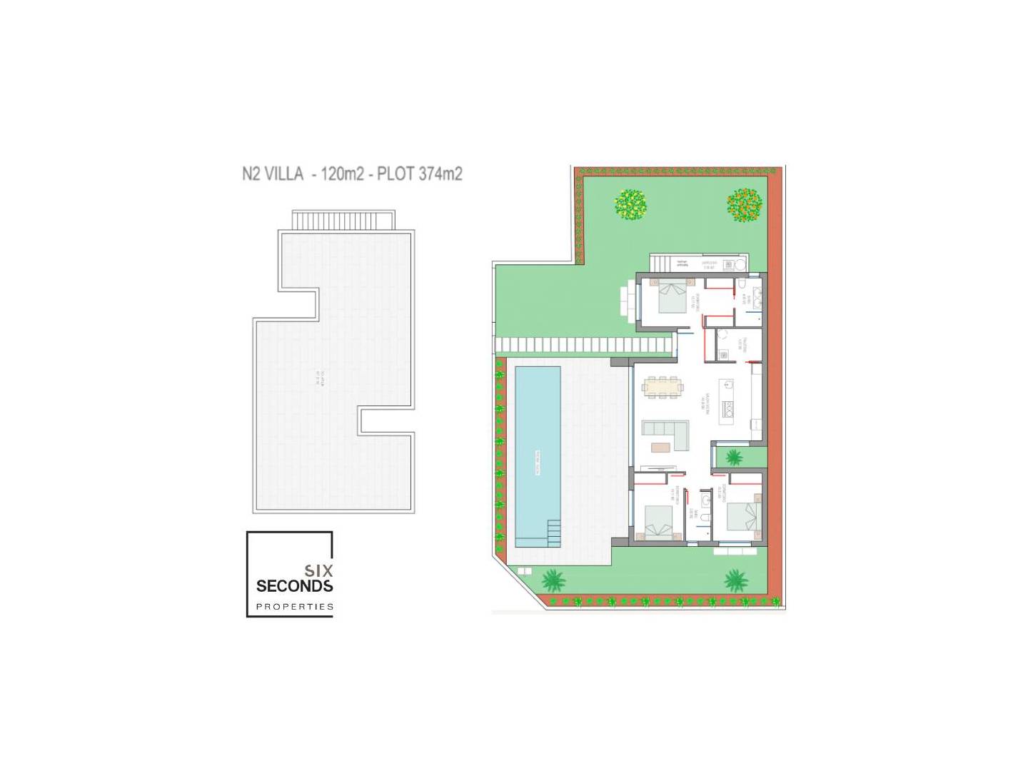 Dieses Anwesen mit 270 m2 Grundstück, 3 Schlafzimmer und 2 Badezimmer verfügen über einen privaten Swimmingpool , ideal zum Entspannen an heißen Sommertagen. Darüber hinaus verfügt das moderne Design über große Fenster, die viel natürliches Licht hereinlassen und so im ganzen Haus eine warme und helle Atmosphäre schaffen.
