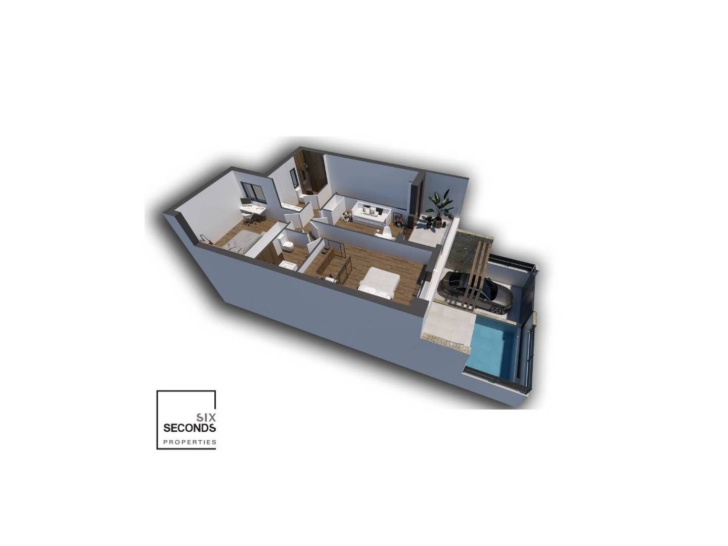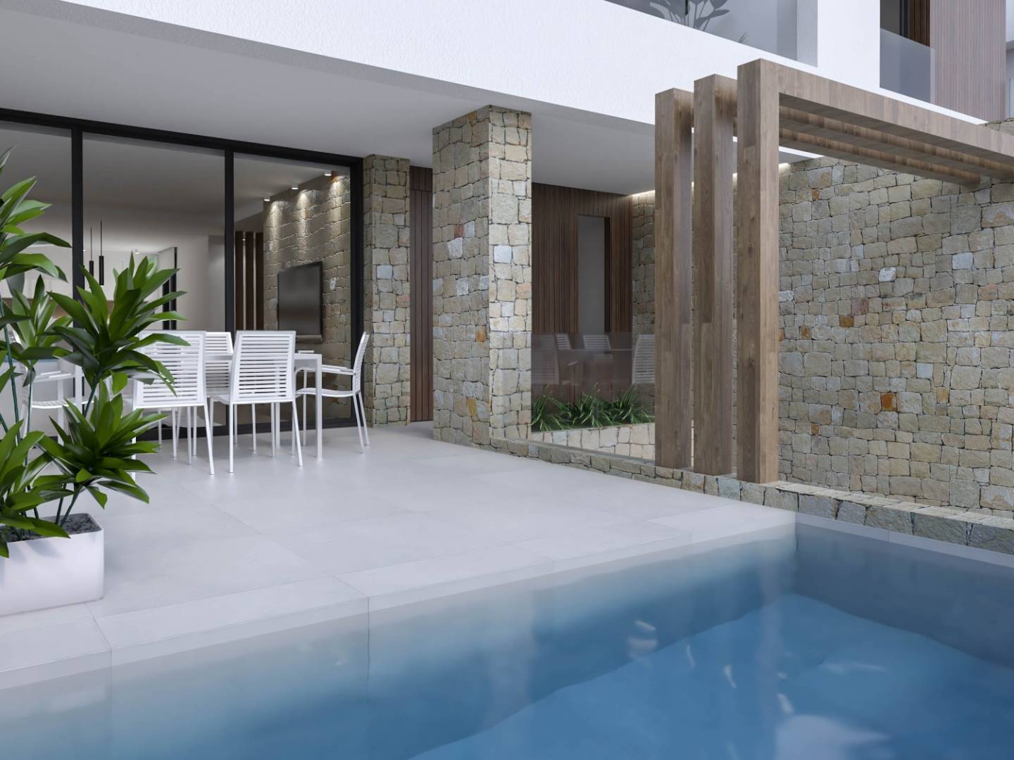 Im Erdgeschoss gibt es eine großzügige Terrasse, eine moderne offene Küche und ein Wohn-/Esszimmer mit direktem Zugang zu einer Terrasse und einem privaten Pool , wo Sie Ihre Freizeit genießen können, ohne das Haus verlassen zu müssen. Im Obergeschoss befinden sich 3 Schlafzimmer, eines davon mit Ankleidezimmer. Darüber hinaus gibt es eine zusätzliche Terrasse, auf der Sie die Sonne und die frische Luft genießen können. Insgesamt verfügt jedes Stadthaus über 3 Badezimmer sowie einen eigenen Parkplatz.