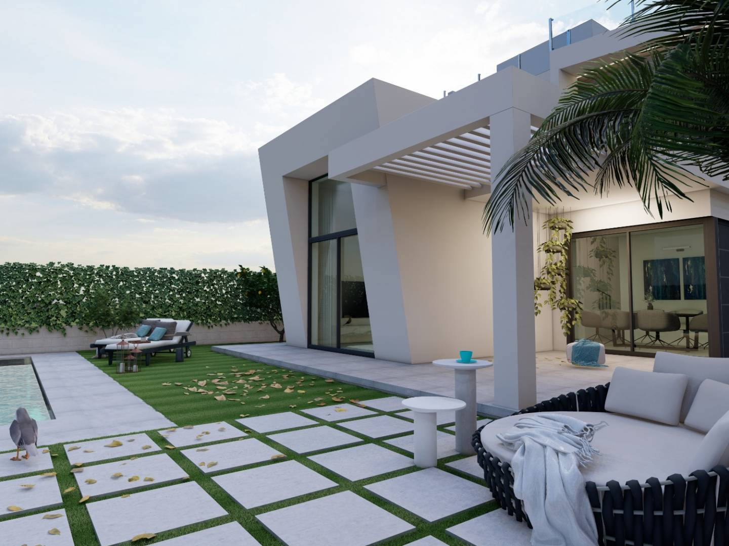 Für mehr Komfort verfügt jede Villa über einen Parkplatz innerhalb des Grundstücks, mit der Möglichkeit, gegen Aufpreis einen zweiten Parkplatz hinzuzufügen .