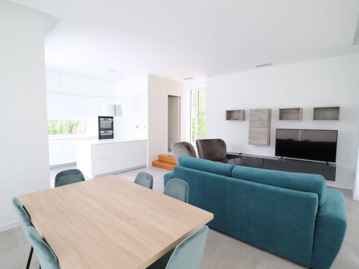 Das großzügige und helle Wohn-Esszimmer fügt sich harmonisch in eine moderne Küche ein, die sich durch ihre zentrale Insel und integriertes Design auszeichnet. Ideal für die Bewirtung oder das Genießen intimer Abendessen.