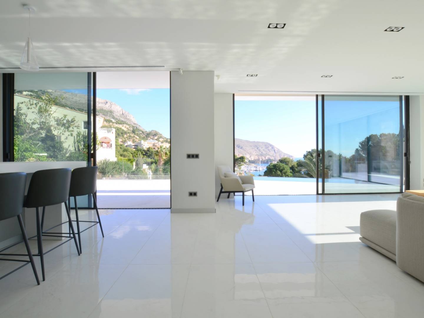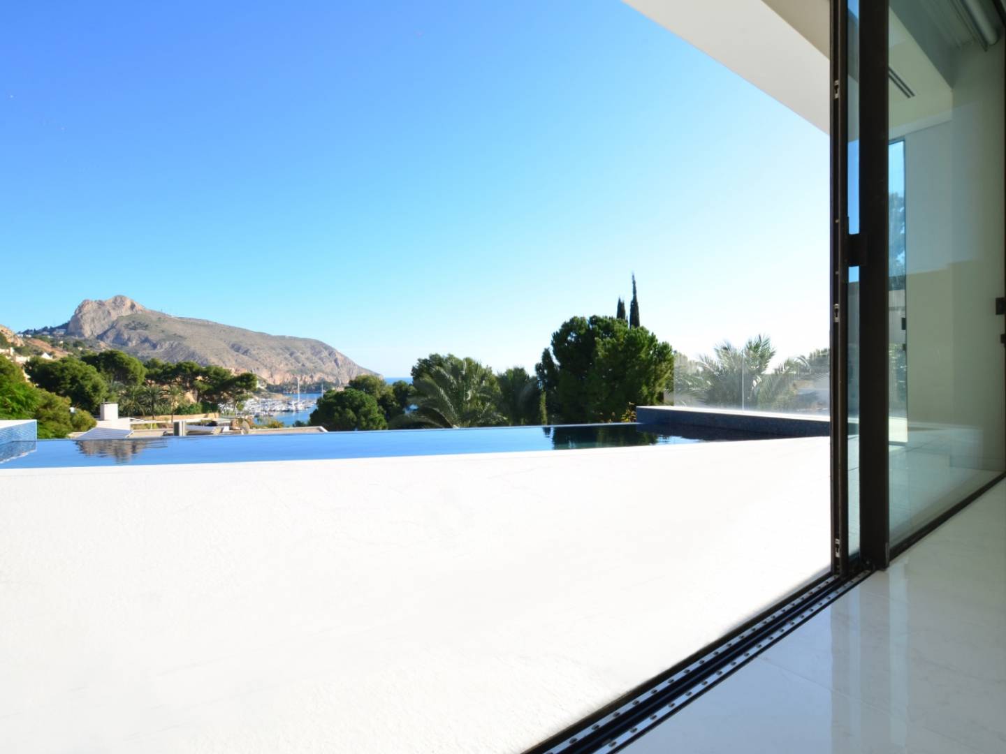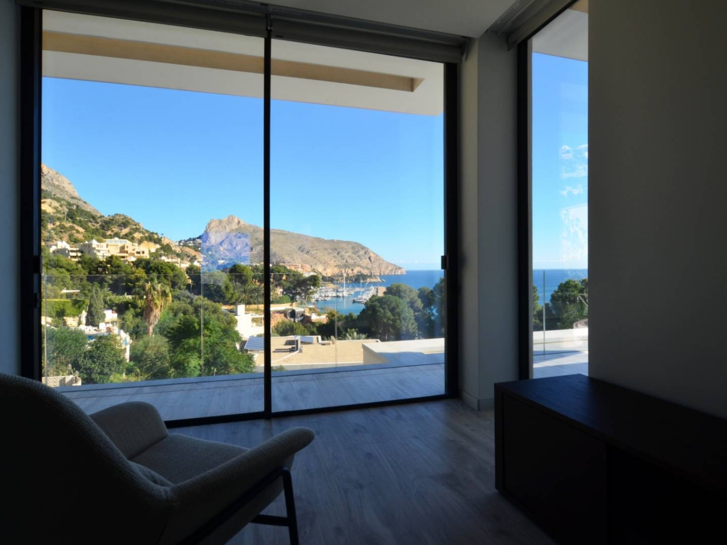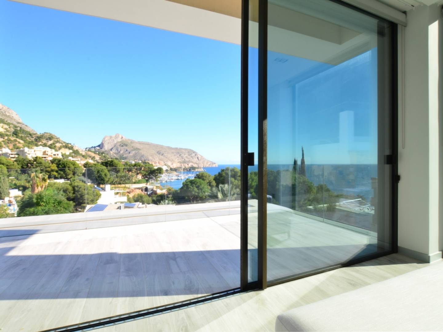 Herrliche Residenz auf drei Ebenen mit beeindruckendem Blick auf das Meer und den Hafen, gelegen in der Urbanisation Mascarat , nahe dem Zentrum von Altea . Nur wenige Schritte vom Strand und nicht weit vom Supermarkt MasyMas entfernt wurde dieses raffinierte Haus im Jahr 2020 erbaut und im Jahr 2021 fertiggestellt. Es zeichnet sich durch seine hochwertige Bauweise und Dekoration aus . Mit einer Gesamtfläche von 353 m2 und einem Grundstück von 965 m2 verfügt die Villa über einen schönen Infinity- Pool und eine Garage für zwei Fahrzeuge .