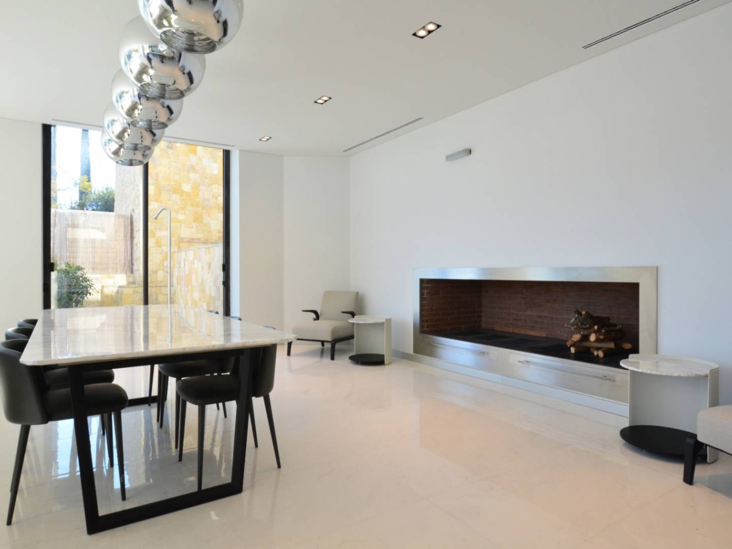 Im Erdgeschoss befinden sich ein Gästezimmer mit großem Ankleidezimmer und Badezimmer, eine finnische Sauna und mehrere Hauswirtschaftsräume. Die Villa verfügt über die Energieeffizienz-Zertifizierung „A“ , wurde mit modernen Materialien höchster Qualität gebaut und ist mit Geräten der Marke Miele ausgestattet. Zu den technischen Merkmalen gehören Technal- Aluminiumfenster mit Doppelverglasung , motorisierte Jalousien von Somfi , Schluter- Fußbodenheizung , Mitsubishi- Klimaanlage mit Wärmerückgewinnungssystem , mechanische Zhender - Lüftung , Sonnenkollektoren , Wärmepumpen , intelligente Airzone - Klimaanlage , eine Tegi-Video-Gegensprechanlage mit Anwendung und Videoüberwachung . , Kameras und Alarmanlage sowie eine Glasfaser-Internetverbindung .