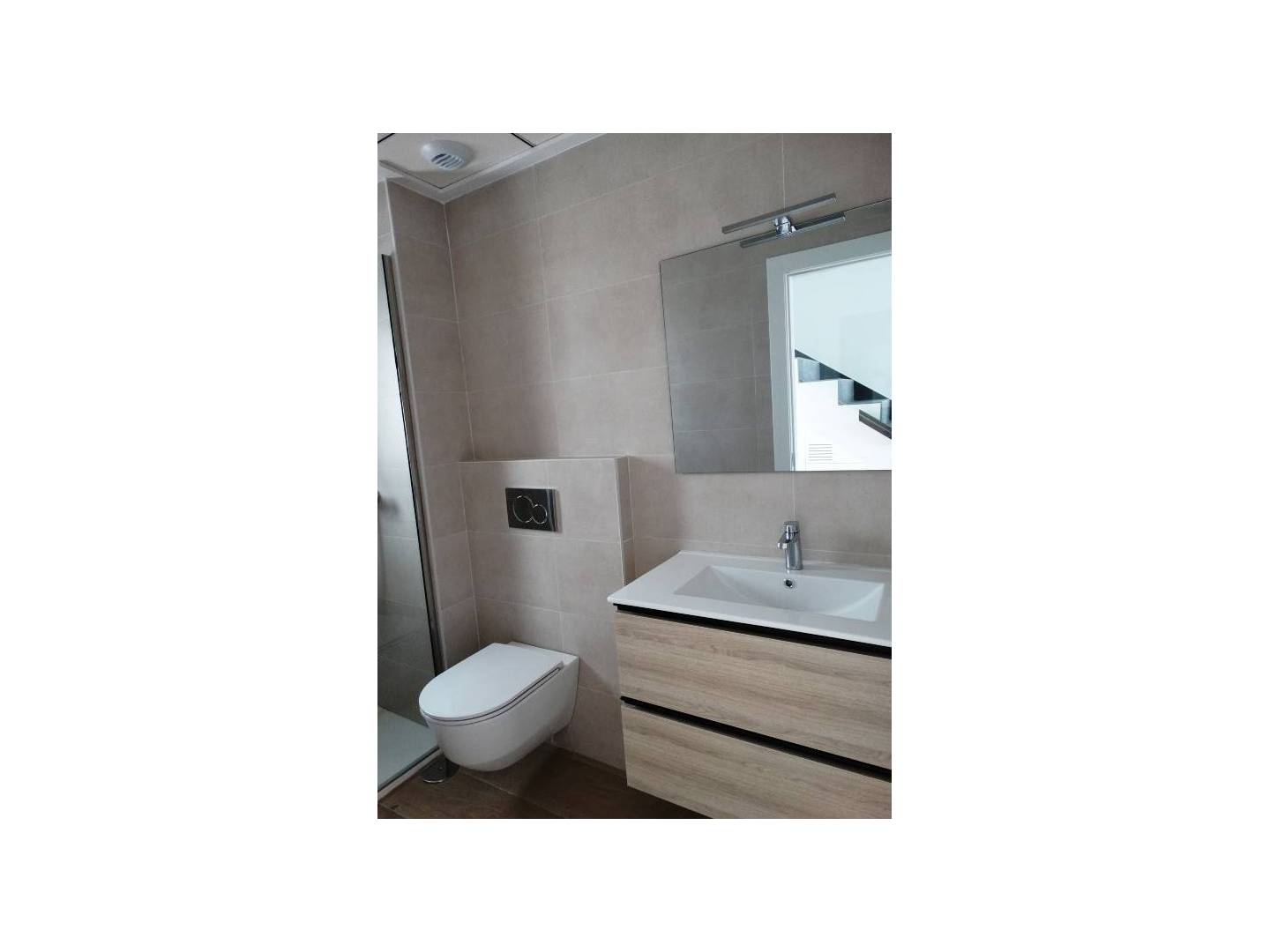 Im Obergeschoss finden Sie zwei weitere Schlafzimmer und zwei Badezimmer, wobei das dritte Schlafzimmer über einen schönen Außenbalkon verfügt. Das Juwel dieser Villa ist die Dachterrasse mit einem privaten Solarium, dem perfekten Ort zum Entspannen und Genießen der atemberaubenden Aussicht.