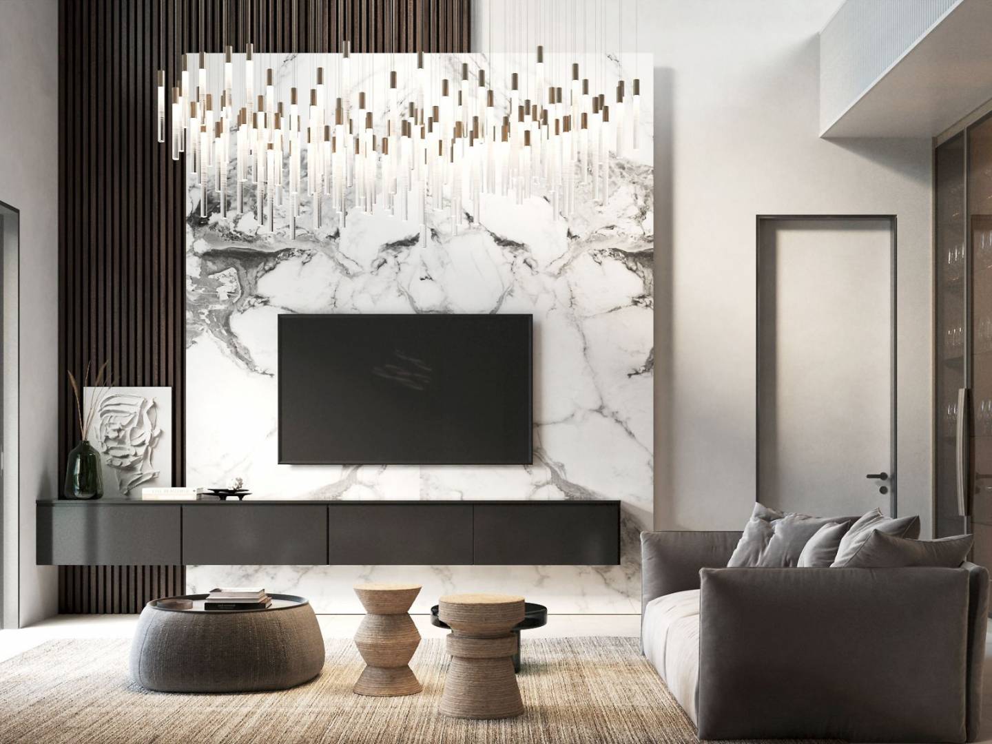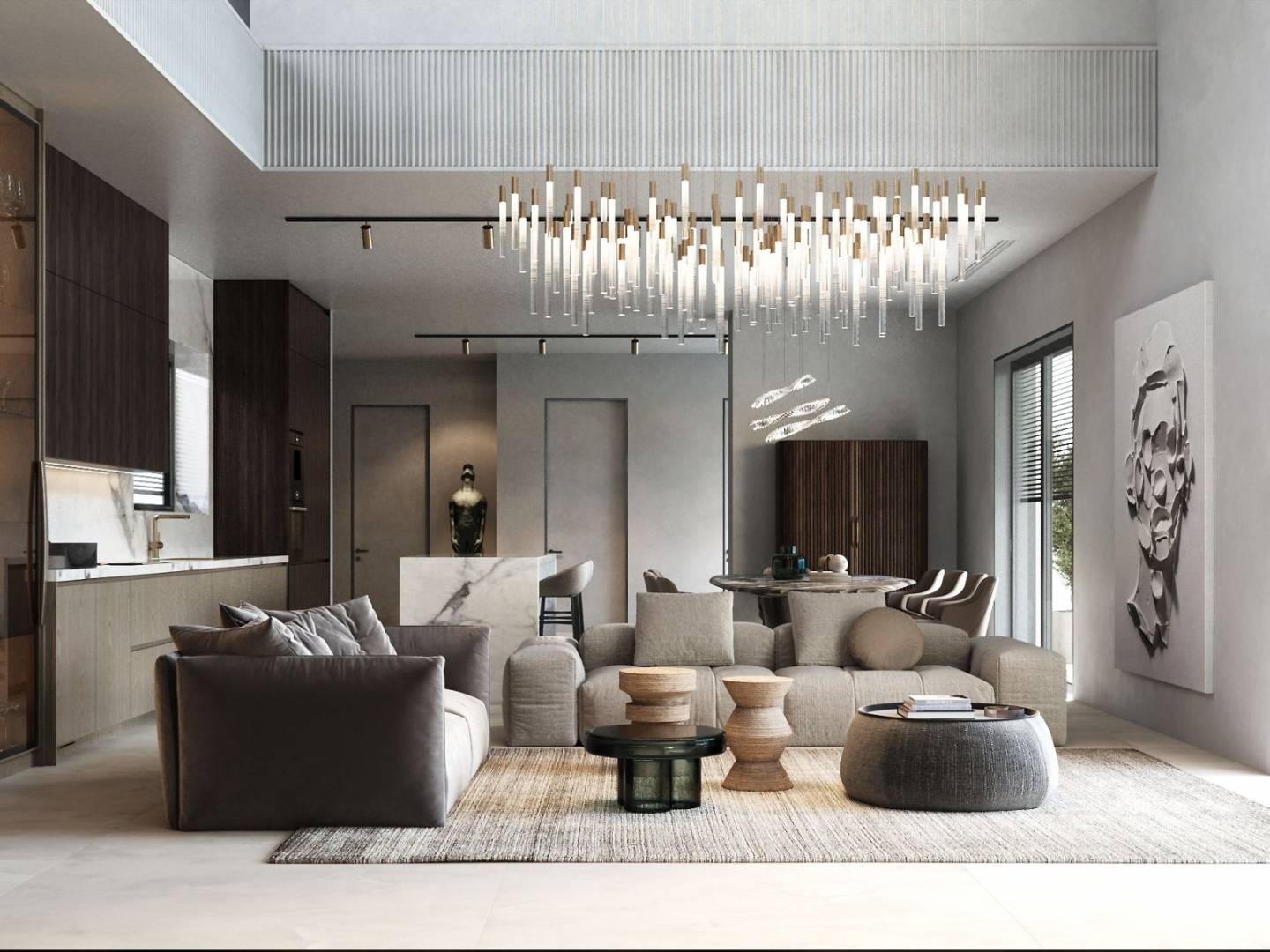 Mit einem anspruchsvollen Design, das leistungsstarke Materialien und exklusive Beschichtungen kombiniert , verfügt die Villa über große Fenster und hohe Decken mit einer lichten Höhe von 2,80 m , die ein Gefühl von Raum und Licht schaffen.
