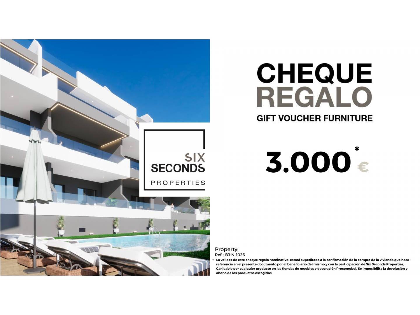 In sechs Seconds Properties hilft Ihnen dabei, Ihre neue Immobilie in das Zuhause Ihrer Träume zu verwandeln. Wir bieten Ihnen einen Geschenkgutschein im Wert von 3.000 € für Möbel und eine technische Besichtigung des Hauses an, bei der unser technisches Team Sie über die Möglichkeiten zur Verbesserung des Lebensraums berät. Komplett frei!!