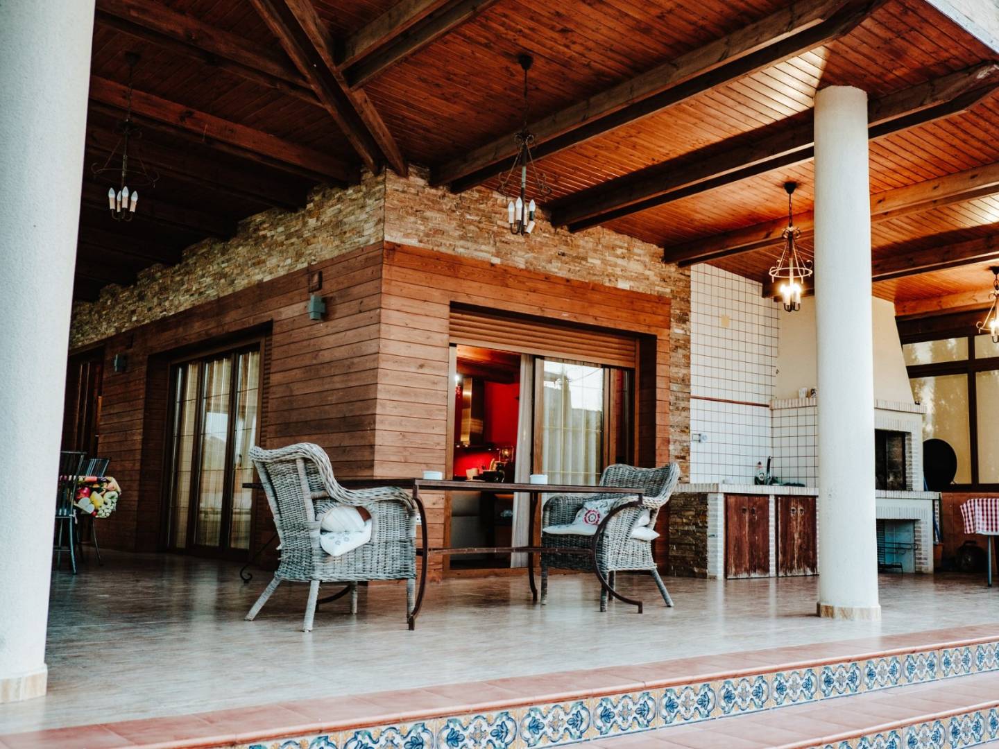 Dieses exquisite Anwesen verfügt über Holzdecken im gesamten Gebäude, einschließlich der Veranda, sowie eine bezaubernde Holz- und Schieferfassade. Das Haus ist in allen Räumen mit Klimaanlage und Kesselheizung ausgestattet und sorgt so für Komfort zu jeder Jahreszeit. Es bietet ein Schlafzimmer und ein Badezimmer, komplett möblierte Innenräume, einen Innenkamin und einen eingebauten Grill für Unterhaltung. Das Highlight ist ein atemberaubender 12x7m großer Infinity-Pool mit der Möglichkeit, ein Salzwassersystem hinzuzufügen.
