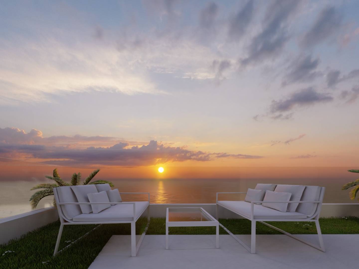 Diese luxuriöse Wohnanlage besteht aus 19 Häusern mit Blick auf das Mittelmeer. Es ist ein modernes Gebäude mit großen Fenstern und Terrassen, die viel Licht in die Häuser bringen.