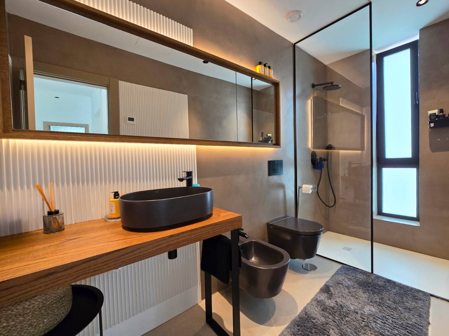 Die Villen verfügen über 4 Schlafzimmer, 4 Badezimmer, ein geräumiges und helles Wohnzimmer, einen Essbereich, eine voll ausgestattete Küche, eine große Veranda mit Grillplatz und eine sonnige Terrasse mit Panoramablick auf die Umgebung und das Mittelmeer.
