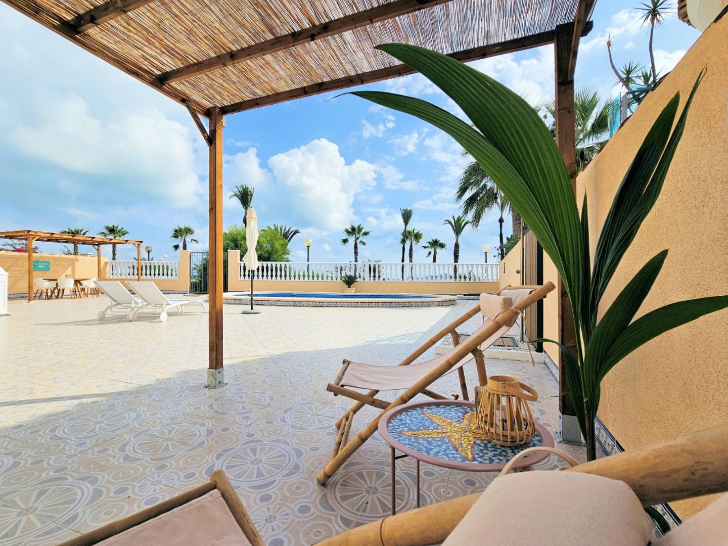Diese außergewöhnliche Villa befindet sich in der gemütlichen Nachbarschaft von "Estrella de Mar", einer ruhigen Gegend im Grünen, direkt am Strand des Mar Menor! Estrella de Mar ist ein spanisches Dorf mit einer gemütlichen Atmosphäre und ausgestattet mit lokalen Bars, Restaurants, Geschäften und all Ihren täglichen Bedürfnissen. Dank seiner außergewöhnlichen Lage haben Sie hier ein wunderbares Urlaubsgefühl und sind dennoch schnell in verschiedenen Sehenswürdigkeiten, großen Städten, viel Kultur, Golfplätzen, Einkaufszentren und vielem mehr. Das Mar Menor ist mit seinen schönen Promenaden, Stränden, Häfen, Wassersportmöglichkeiten usw. eine echte Attraktion. Es ist ein Stück Mittelmeer, das vom Rest abgeschottet ist, was dafür sorgt, dass das Meerwasser immer ein wenig wärmer und ruhiger ist. Das Grundstück selbst hat direkten Zugang zu einer grünen Promenade und dem Strand! Diese fantastische Eigenschaft ist nicht der einzige Grund, warum diese Immobilie ein wahrer Glücksfall ist. Die Immobilie ist nämlich völlig freistehend und verfügt über einen schönen Garten mit privatem Pool, Terrassen und vielen gemütlichen Plätzen, um das Klima zu genießen. Im Erdgeschoss dieser renovierten Immobilie befinden sich ein großer Wohn-/Loungebereich mit offener Küche, 2 Doppelschlafzimmer, ein Familienbad und das Hauptschlafzimmer mit eigenem Bad. Über eine Außentreppe gelangt man auf die Sonnenterrasse mit atemberaubender Aussicht. Hier befindet sich auch das vierte Schlafzimmer mit eigenem Bad und eigener Kochnische. Als neuer Eigentümer dieser Immobilie haben Sie auch Zugang zur Urbanisation, die über eine Bar/Restaurant, einen Tennisplatz, einen Swimmingpool, einen Basketballplatz, einen Spielplatz und eine Minigolfanlage verfügt. Zusätzlich zu all den bereits erwähnten Vorteilen bietet diese Immobilie auch zahlreiche Extras wie: neue Klimaanlagen (warm/kalt), komplett renoviert, Parkplatz, Einbauschränke, viel Stauraum (innen und außen), separater Schrank für Waschmaschine und Trockner, kürzlich neu gestrichen (innen und außen), Rollläden und Alarmanlage. Der Swimmingpool wurde komplett neu angelegt und mit einer neuen Pumpe und Filteranlage ausgestattet. Es besteht die Möglichkeit der Ferienvermietung und ist derzeit bis Ende September vermietet (dies ist verhandelbar, wenn Sie der neue Eigentümer sind und dies nicht wünschen). Lassen Sie sich diese Gelegenheit nicht entgehen und kontaktieren Sie uns bald, um dieses schöne Strandhaus unter der spanischen Sonne zu besuchen! Suma: 500 Euro/Jahr Gemeinschaftsgebühren: 1.000 Euro/Jahr