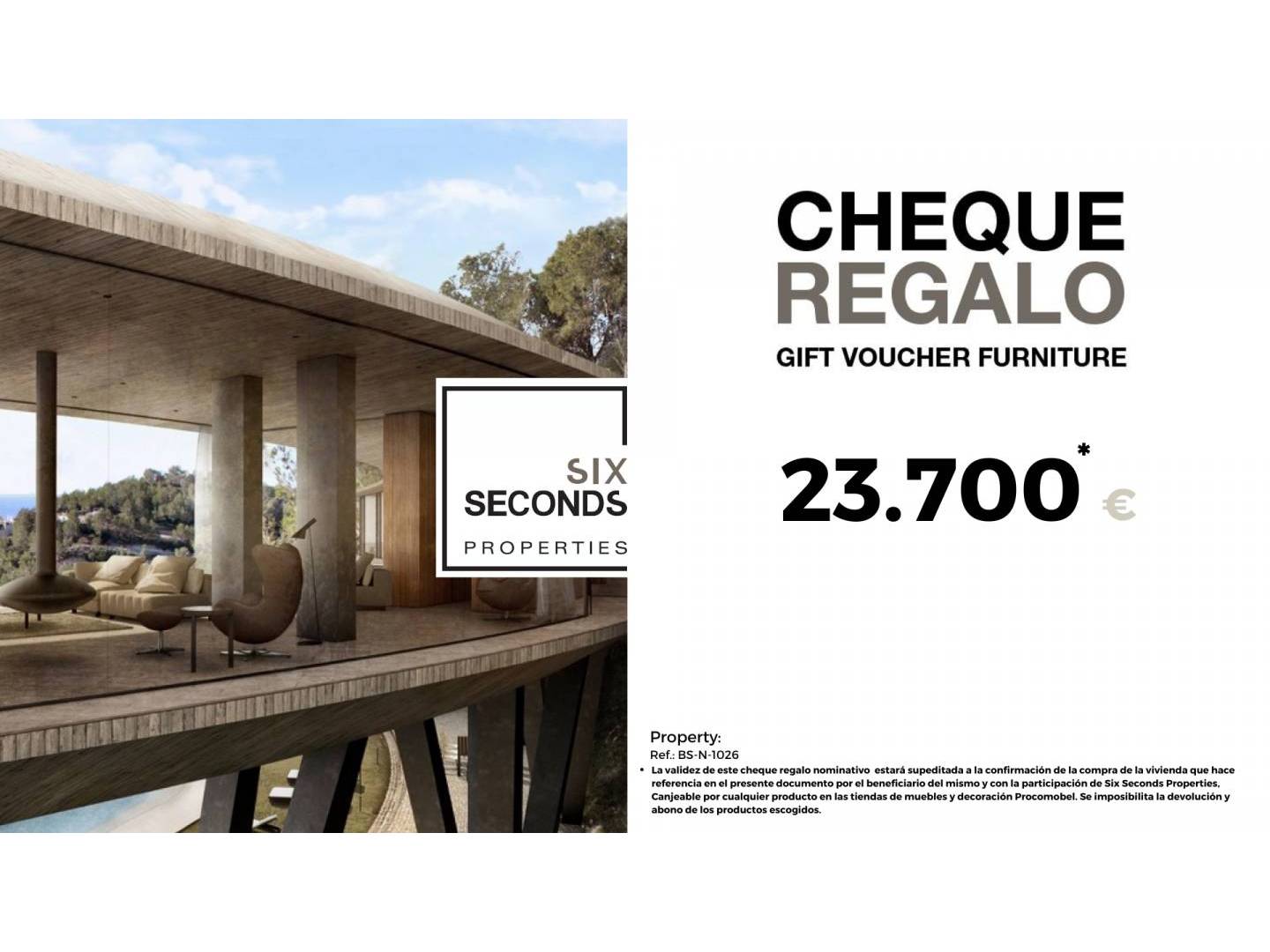 Bei Six Seconds Properties helfen wir Ihnen, Ihre neue Immobilie in das Zuhause Ihrer Träume zu verwandeln, und bieten Ihnen einen Geschenkgutschein im Wert von 23.700 € für Möbel und eine technische Besichtigung der Immobilie , bei der unser technisches Team Sie über die Möglichkeiten zur Verbesserung des Zuhauses berät. Völlig kostenlos!!