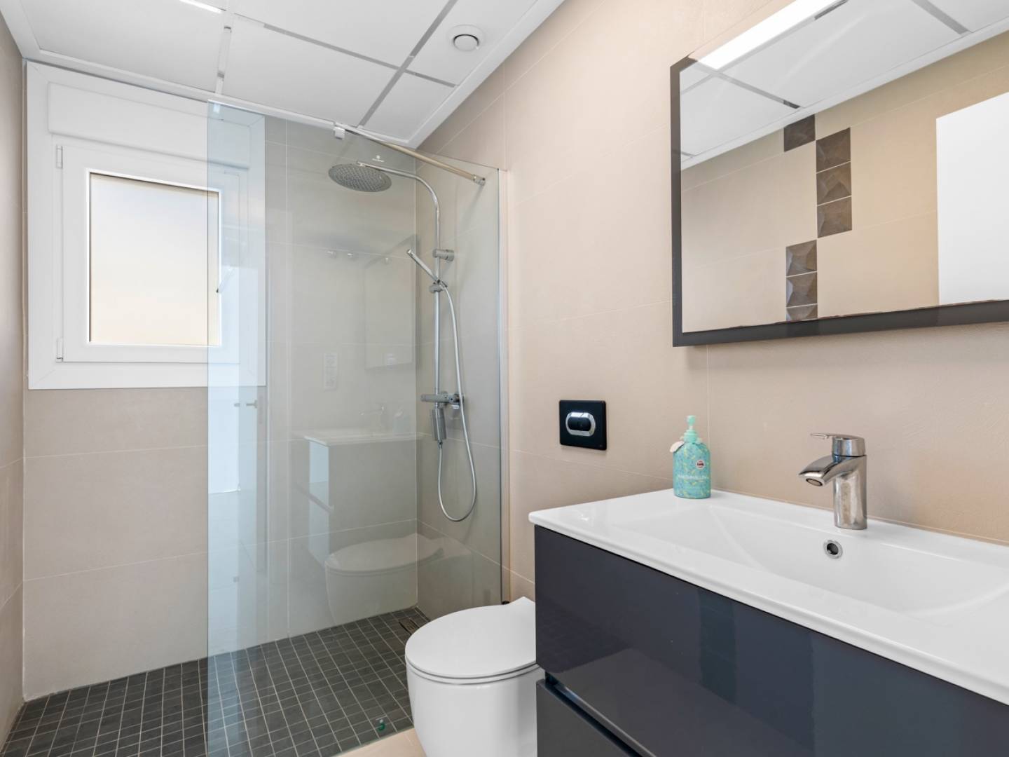Diese Immobilie befindet sich in einer Wohnanlage mit 50 freistehenden Häusern und bietet eine funktionale Raumaufteilung und komfortable Wohnbereiche. Sie wurde 2018 erbaut und verfügt über eine Gesamtfläche von 101 m² auf einem 182 m² großen Grundstück mit drei Schlafzimmern und drei Badezimmern. Im Erdgeschoss befinden sich ein Wohnzimmer mit integrierter Küche, ein Badezimmer, ein Schlafzimmer und ein Waschbereich mit einer 8-kg-Waschmaschine und -Trockner. Die erste Etage umfasst zwei weitere Schlafzimmer, eines davon mit eigenem Bad und Zugang zu einer privaten Terrasse. Das Obergeschoss bietet eine Dachterrasse mit Platz für eine Außenküche und einen Whirlpool-Anschluss. Der Außenbereich umfasst einen privaten Salzwasserpool mit automatischer Abdeckung, einen Kunstrasengarten und einen Parkplatz auf dem Grundstück. Das Haus ist mit einem aerothermischen Heiz- und Kühlsystem, zwei automatischen Markisen und einem Sonnensegel für Schatten ausgestattet. Zusätzliche Merkmale sind hochwertige Küchengeräte, eine Bosch-Wi-Fi-Kaffeemaschine, automatische Jalousien, Fliegengitter an Fenstern und Türen, Glasduschabtrennungen, ein Sicherheitsüberwachungssystem innen und außen sowie ein Safe. Die Immobilie befindet sich in einer ruhigen Lage mit guter Anbindung an nahegelegene Städte. Für weitere Informationen oder eine Besichtigung kontaktieren Sie uns bitte.