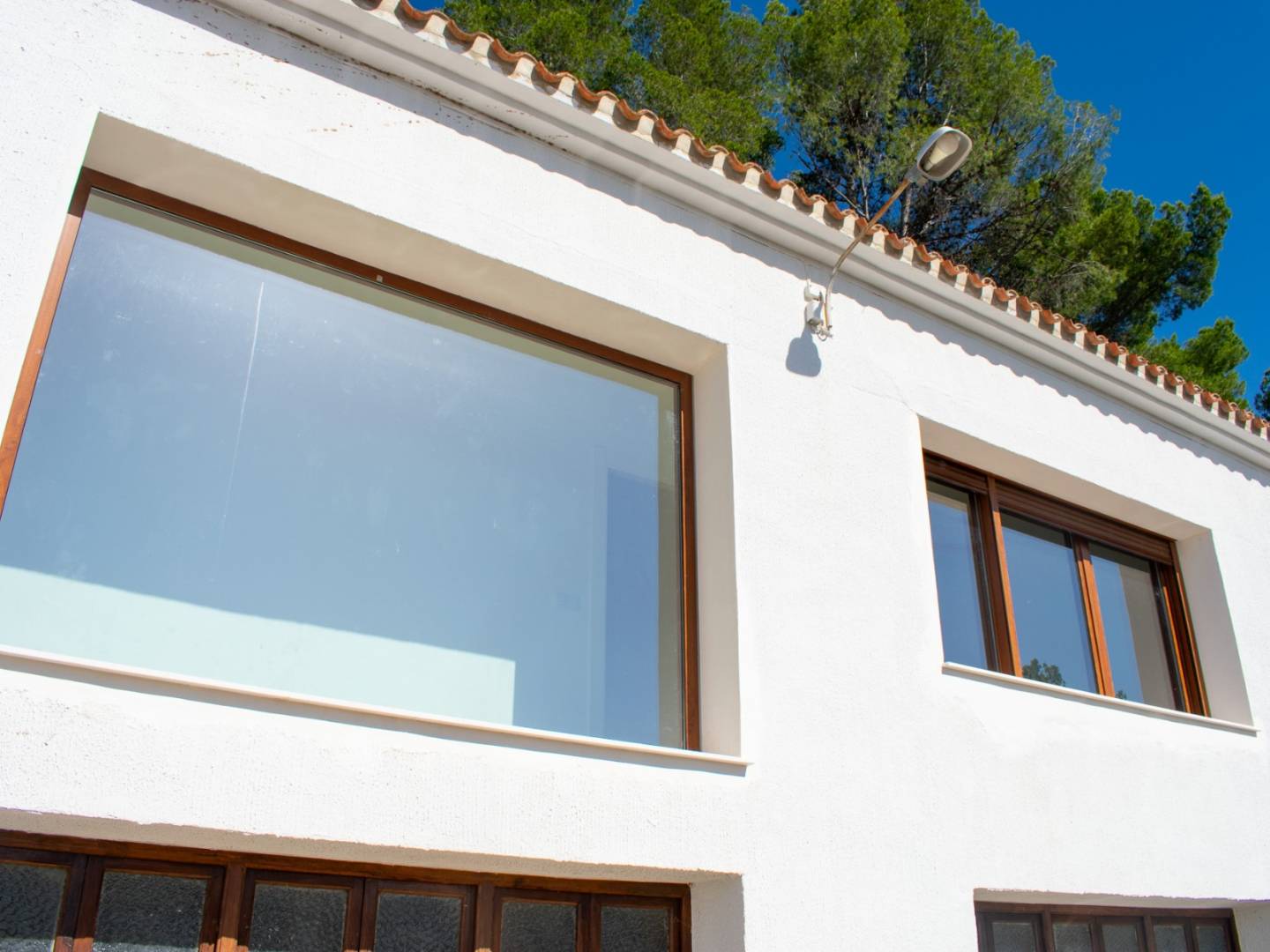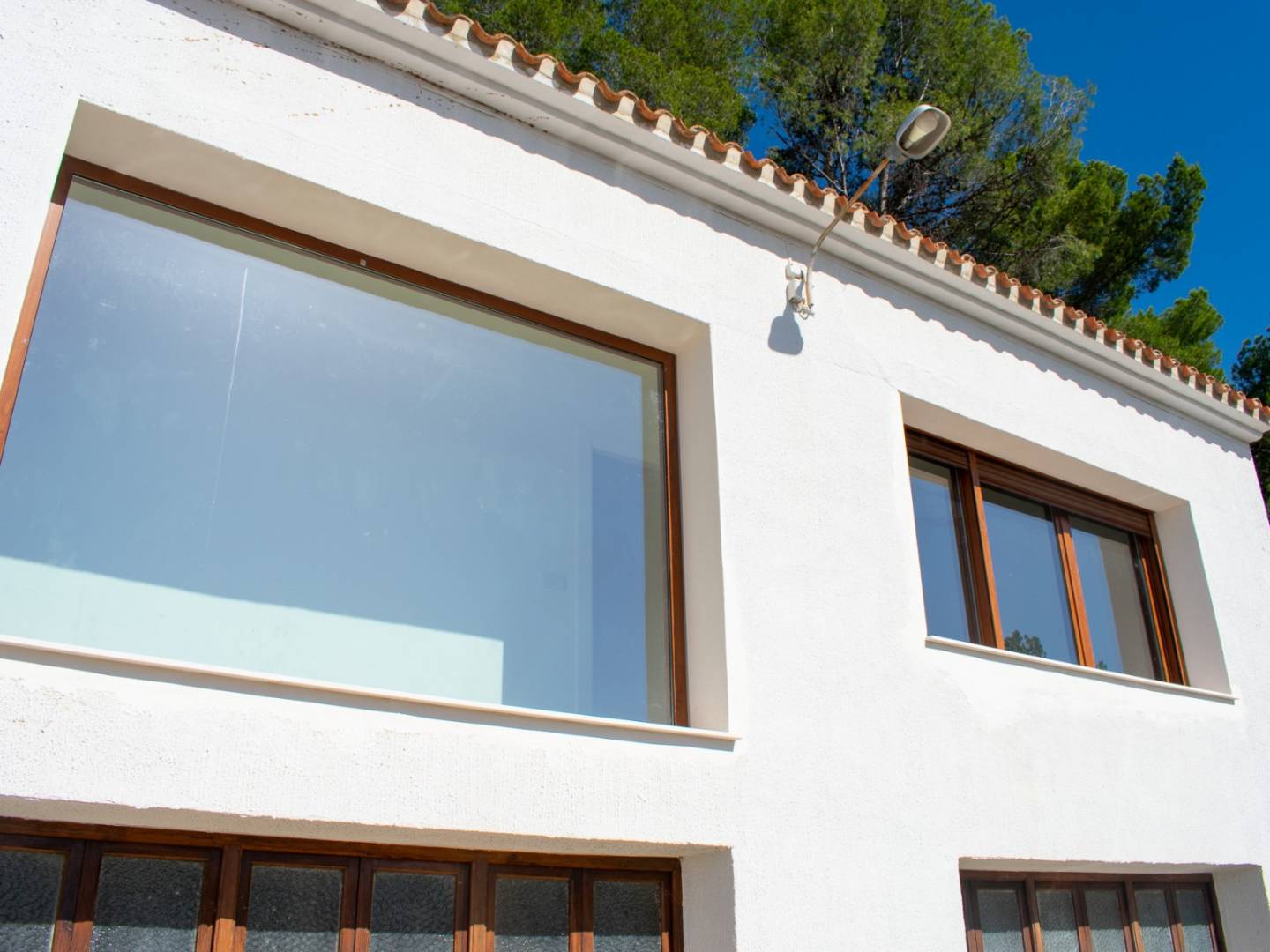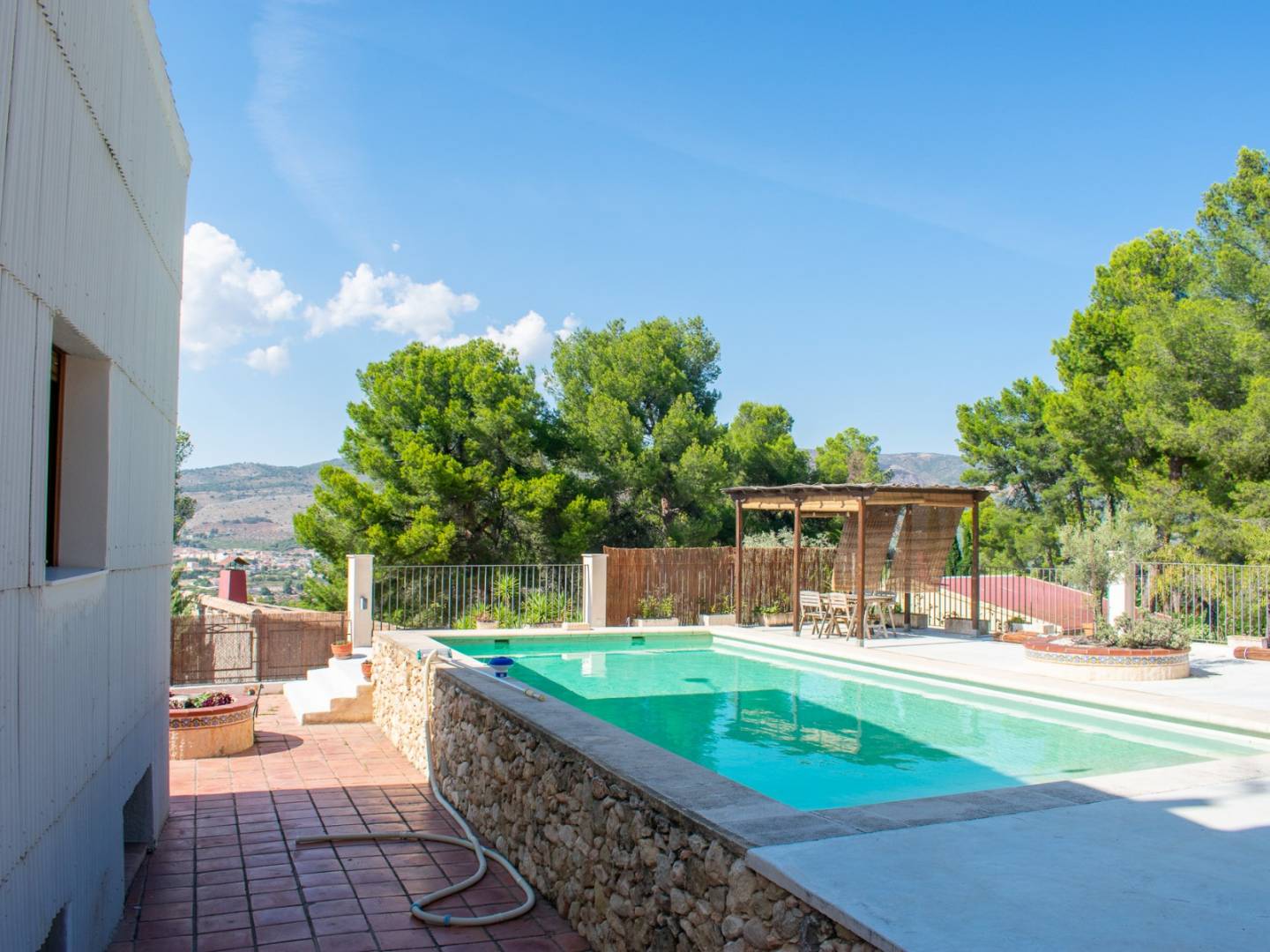 Entdecken Sie dieses freistehende Haus oder Chalet mit 400 m² bebauter Fläche und 380 m² nutzbarer Fläche, gelegen auf einem 3.400 m² großen Grundstück in erhöhter Lage mit Panoramablick auf die Foia de Castalla und die malerischen Dörfer Castalla , Onil und Ibi .