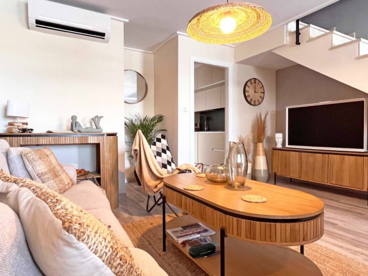 Entdecken Sie Ihr Traumhaus in diesem wunderschön renovierten Stadthaus im begehrten Viertel Los Balcones, Torrevieja. Diese moderne Immobilie bietet 3 geräumige Schlafzimmer und 2 stilvolle Badezimmer, ideal für komfortables Wohnen mit der Familie oder als Feriendomizil. Betreten Sie das helle und luftige Innere, das mit zeitgenössischem Dekor voll möbliert ist. Die separate moderne Küche ist voll ausgestattet und macht die Zubereitung von Mahlzeiten zu einem Vergnügen. Genießen Sie den Luxus mehrerer Außenbereiche, darunter eine Terrasse im Erdgeschoss für Mahlzeiten im Freien, einen privaten Balkon mit Blick auf den ruhigen Gemeinschaftspool und eine beeindruckende Dachterrasse mit atemberaubendem Blick auf den berühmten rosa Salzsee. Zu den weiteren Merkmalen gehören ein privater Parkplatz und Zugang zu einem gepflegten Gemeinschaftspool, der eine perfekte Umgebung für Entspannung und Freizeit schafft. Ob beim Sonnenbaden, beim Empfangen von Gästen oder beim Genießen der ruhigen Aussicht dieses Stadthaus bietet Komfort und Bequemlichkeit. Verpassen Sie nicht die Gelegenheit, diese außergewöhnliche Immobilie zu Ihrem Eigenen zu machen!