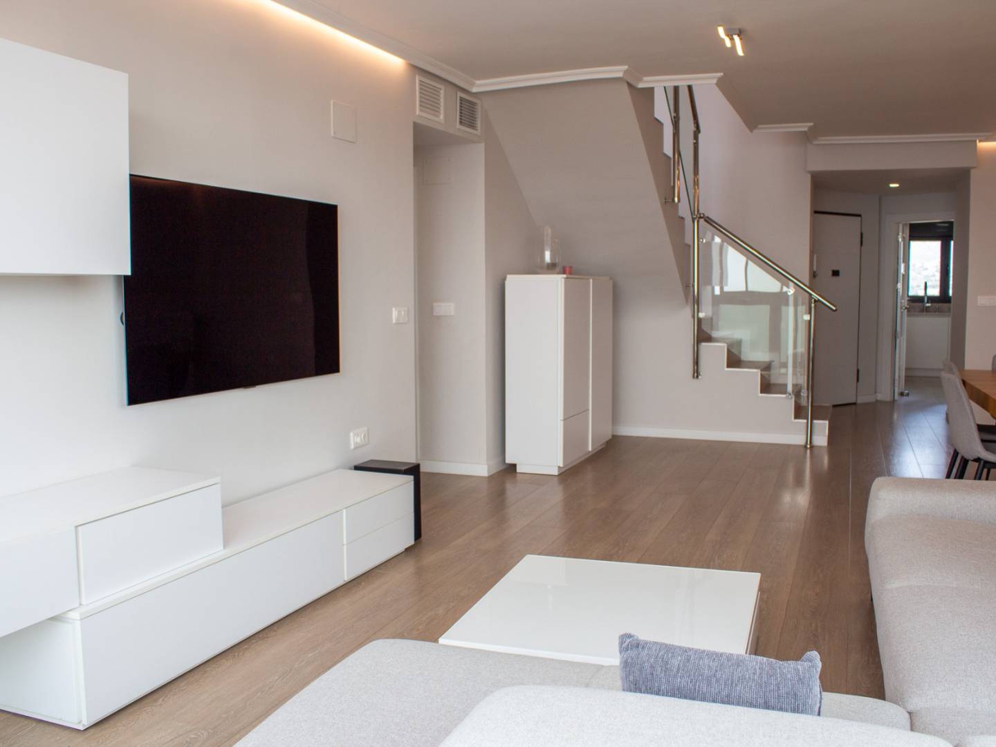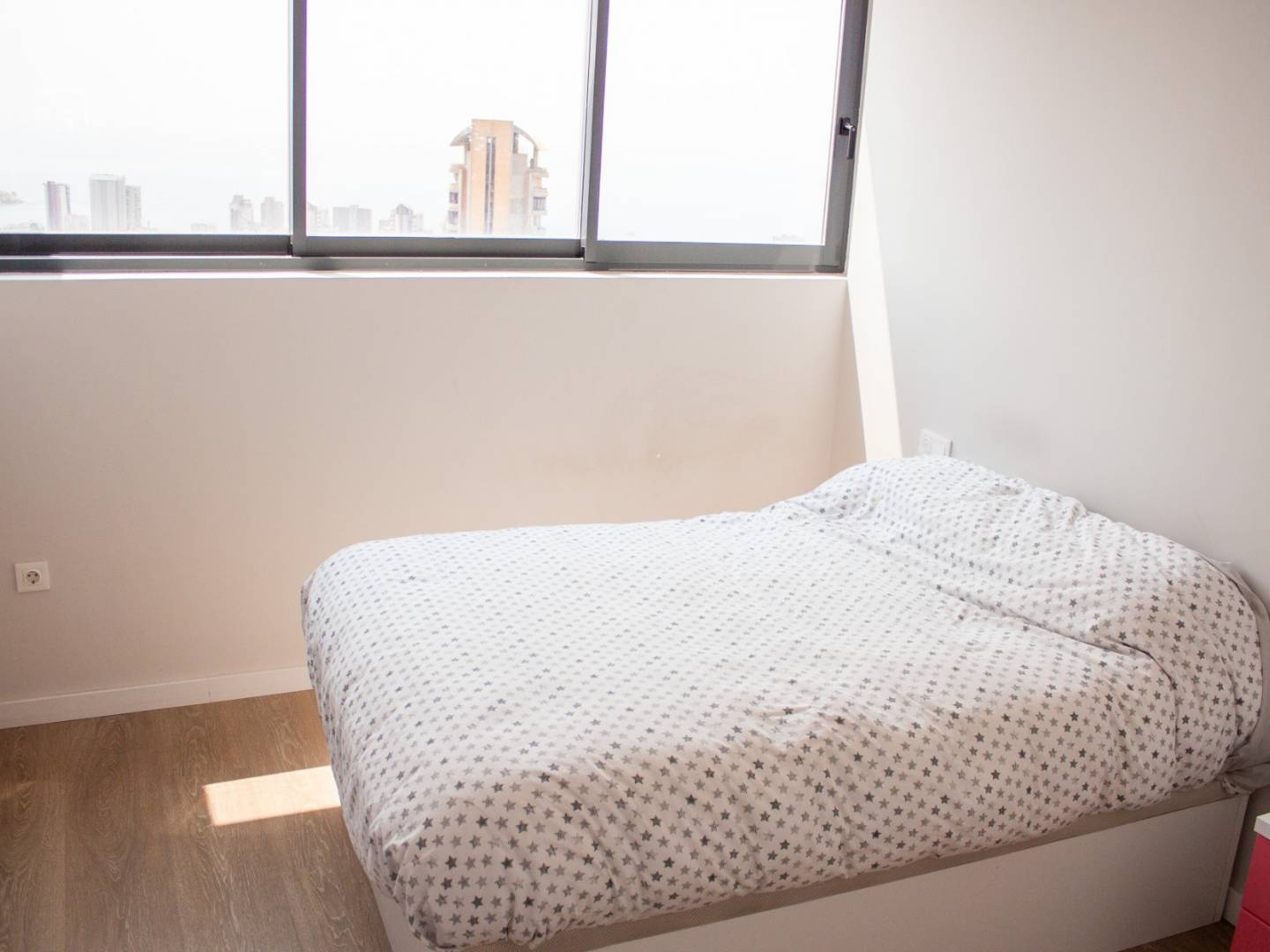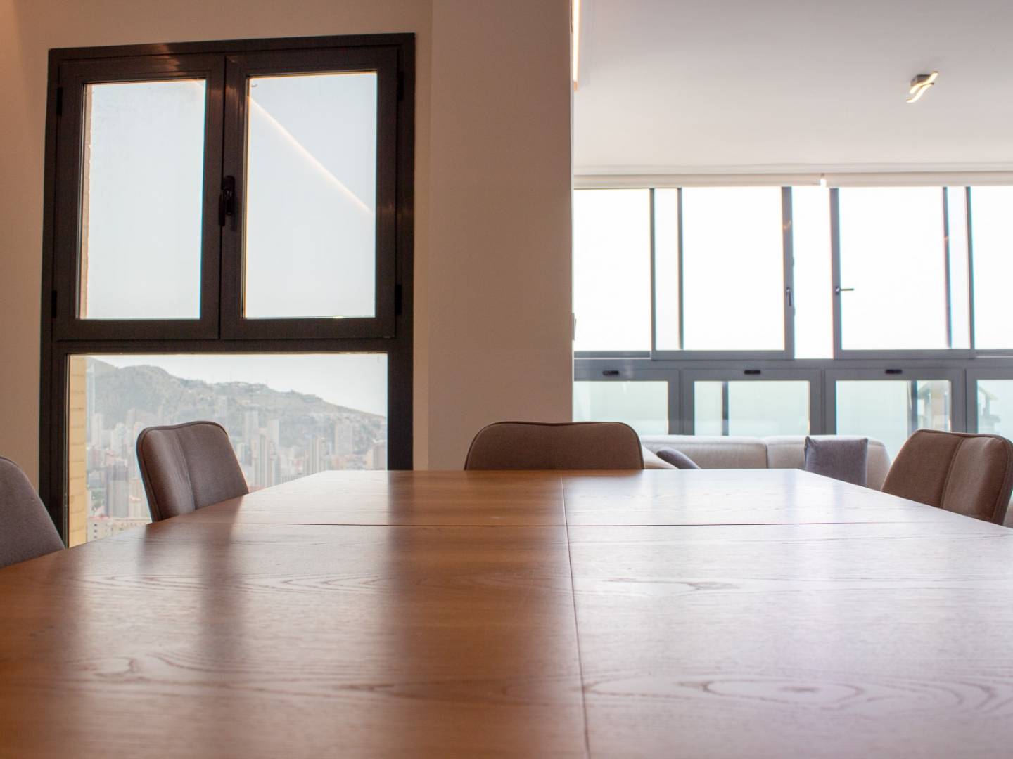 Entdecken Sie dieses beeindruckende Duplex-Penthouse in einem der repräsentativsten Gebäude von Benidorm , einem wahren Juwel unter den Luxusimmobilien . Dieses exklusive Haus im 39. Stock bietet einen unvergleichlichen Panoramablick auf das Mittelmeer von Calpe bis Alicante . Mit einer bebauten Fläche von 210 m² besteht das Anwesen aus drei geräumigen Schlafzimmern mit Einbauschränken , zwei Badezimmern ( eines davon en suite ), einer voll ausgestatteten separaten Küche mit Waschküche und einem hellen Wohn-Esszimmer mit Zugang zu einer privaten Südterrasse , auf der Sie das ganze Jahr über die Sonne genießen können.