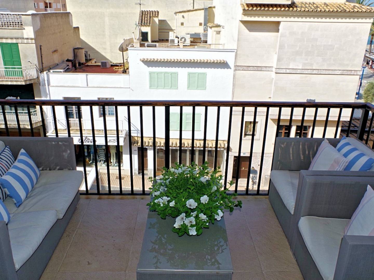 Wohnung direkt am Hafen von Port Andratx mit Blick über das Hafenviertel und die Hafenmole perfekt zu genießen vom eigenen Balkon aus. Die Wohnung liegt im dritten Stock und umfasst drei Schlafzimmer (zwei Doppelzimmer und ein Einzelzimmer) sowie zwei Bäder, eines mit Dusche und eines mit Badewanne. Der offen gestaltete Wohn- und Essbereich mit bodentiefen Fenstern und Zugang zum 7 m² großen Balkon bietet eine schöne Aussicht auf den Hafen. Für ganzjährigen Komfort ist die Wohnung mit einer Klimaanlage (warm/kalt) ausgestattet.
