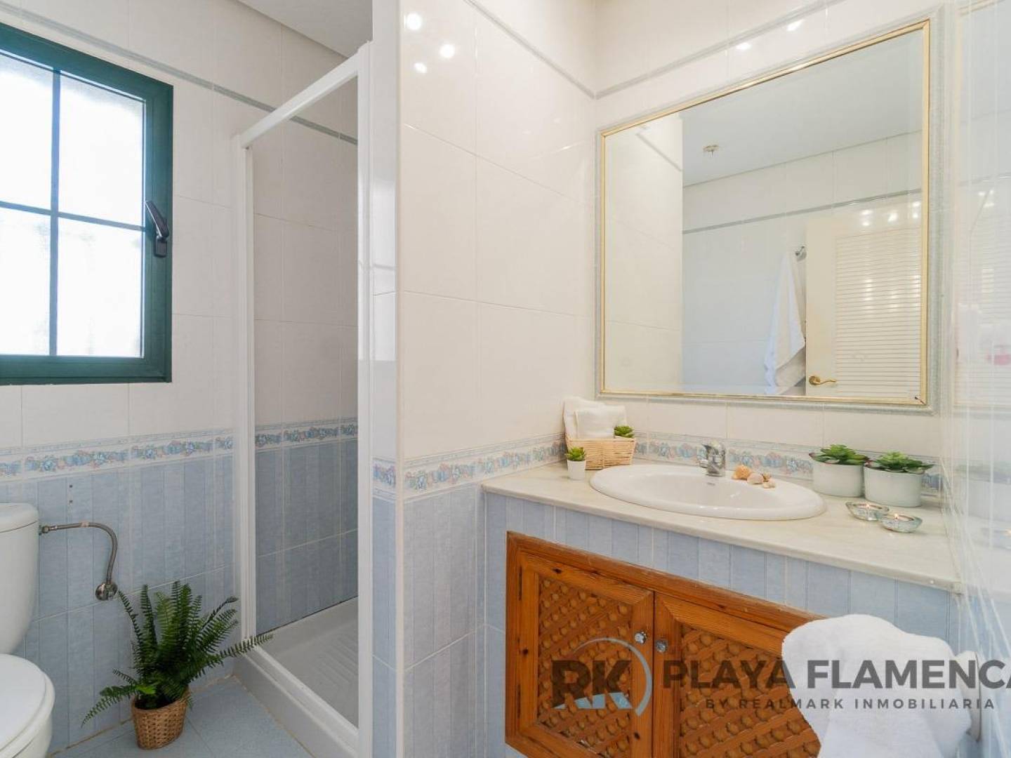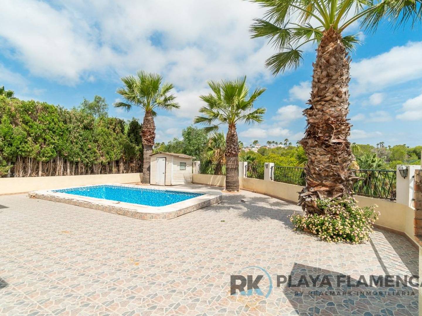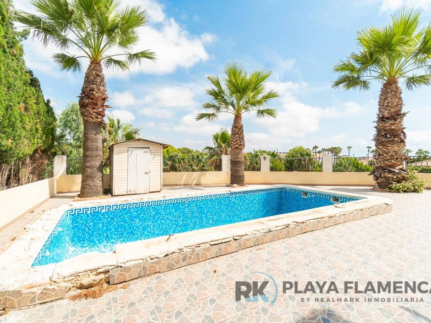 In einer der ruhigsten und exklusivsten Gegenden der VillaMartin-Siedlung, ganz in der Nähe von drei Golfplätzen und mit eigenem Garten und Pool, liegt diese wunderschöne Villa mit Blick auf Grünflächen ideal für eine große Familie.~Das Anwesen befindet sich in der Nähe von drei Golfplätzen: Las Ramblas, Campoamor und Villamartín. Es bietet außerdem eine gute Anbindung an die Autobahnausfahrt AP-7 mit direkten Verbindungen zu den Flughäfen Alicante (ca. 40 km) und Murcia (ca. 40 km).~Es verfügt über einen Gemeinschaftspool mit Gartenanlage, wo Sie mit den anderen Nachbarn Sonnenbaden und Schwimmen können. Es gibt außerdem einen eigenen Garten mit gefliesten Terrassen und einen renovierungsbedürftigen Pool.~Die Größe der Villa ist ideal für alle, die viel Platz suchen oder Gäste und Freunde bewirten möchten; mit 3 Schlafzimmern, 2 Bädern und einem großzügigen Grundstück mit Gartenbereich.~Das 410 Quadratmeter große Grundstück bietet mit seinem gepflasterten Vorgarten mit Zufahrt und dem gepflasterten Hintergarten mit freier Aussicht viel Platz und ein Gefühl von Unabhängigkeit. Da der Garten jedoch gepflastert ist und nur wenige Bäume und Pflanzen aufweist, ist er pflegeleicht und erfordert wenig Arbeit. Die Hauptfassade, die Terrassen und das Solarium der Villa sind nach Süden ausgerichtet und bieten daher praktisch den ganzen Tag Sonne. Diese Villa ist zweifellos der Traum vieler.~~Und die Raumaufteilung des Hauses: Wie bereits erwähnt, gelangt man vom Garten aus auf die erste Terrasse, die nach Süd-Südwest ausgerichtet ist. Sie hat den ganzen Tag Sonne, ist aber gleichzeitig zum Garten und zur Straße hin offen und lässt eine frische Brise herein. Diese geräumige Terrasse mit Platz für Sofas und Tische führt zum Haupteingang des Hauses mit Sicherheitstür, der sich zum geräumigen und hellen Wohn- und Essbereich mit Kamin öffnet. Außerdem gibt es eine separate Küche mit eigener Tür und Fenster, sodass Sie kochen können, ohne sich Sorgen machen zu müssen, dass Gerüche und Fett in den Rest des Hauses gelangen.~Ebenfalls im Erdgeschoss befinden sich ein geräumiges Schlafzimmer mit Einbauschrank und ein Badezimmer mit ebenerdiger Dusche. So kann eine ältere oder gehbehinderte Person allein auf dieser Etage wohnen, ohne Treppen steigen zu müssen.~~Die erste Etage, die über die zweiläufige Innentreppe bequem erreichbar ist, führt zu den beiden anderen Schlafzimmern mit Einbauschränken und direktem Zugang zur großen Sonnenterrasse und zum Balkon. Auf dieser Etage befindet sich auch ein zweites Badezimmer, diesmal mit einer Badewanne zum Entspannen und Einbaumöbeln.~~So verfügt jede Etage über ein eigenes Badezimmer, Schlafzimmer und viel Platz, um sowohl den Außenbereich als auch den Innenbereich mit Terrassen zu genießen das perfekte Zuhause für eine große Familie.~~Das Haus ist aufgrund seiner Geräumigkeit, der Helligkeit, der Nähe zu allen Annehmlichkeiten und dem Golfplatz sowie seiner Ruhe einen Besuch wert.