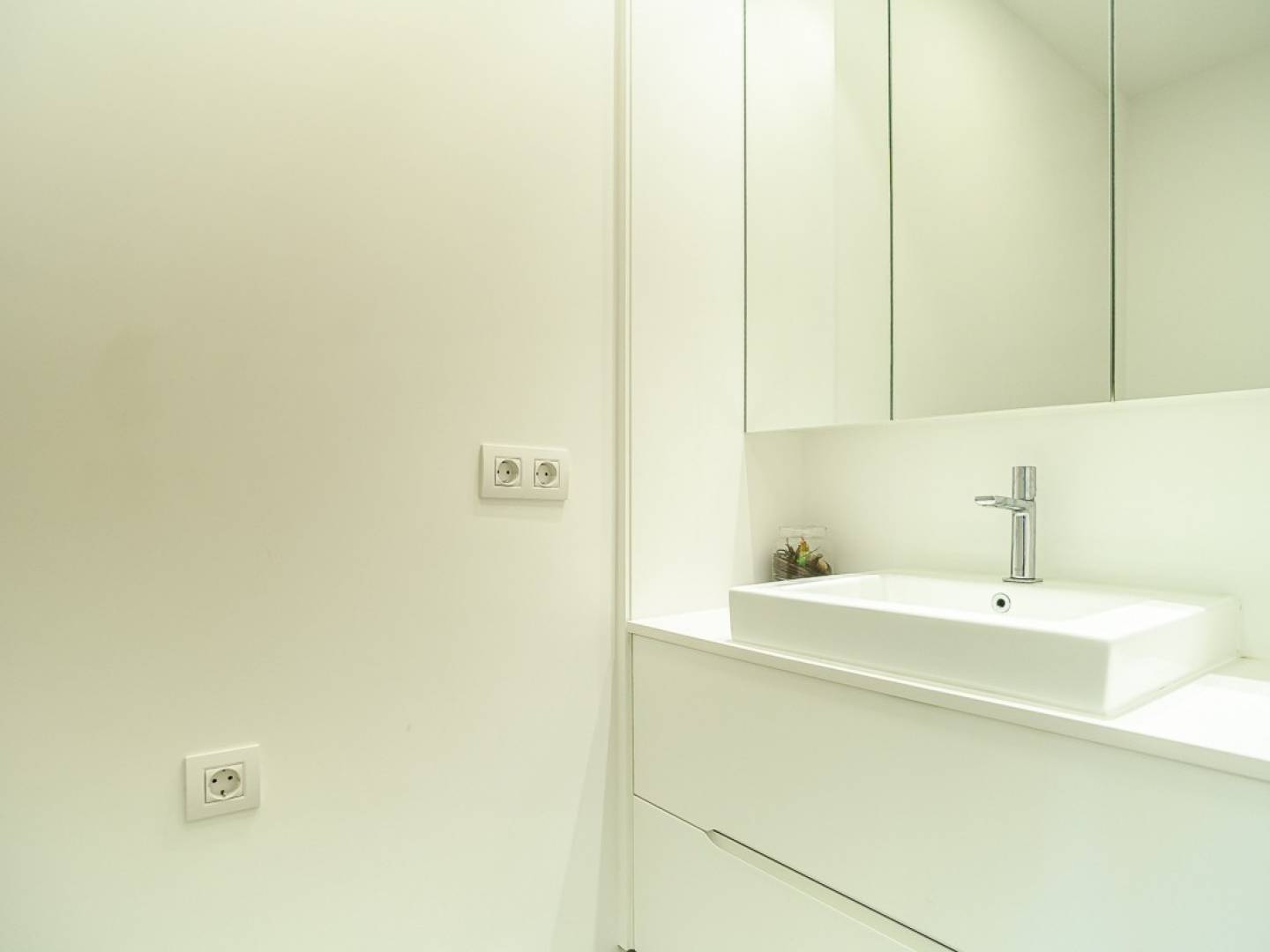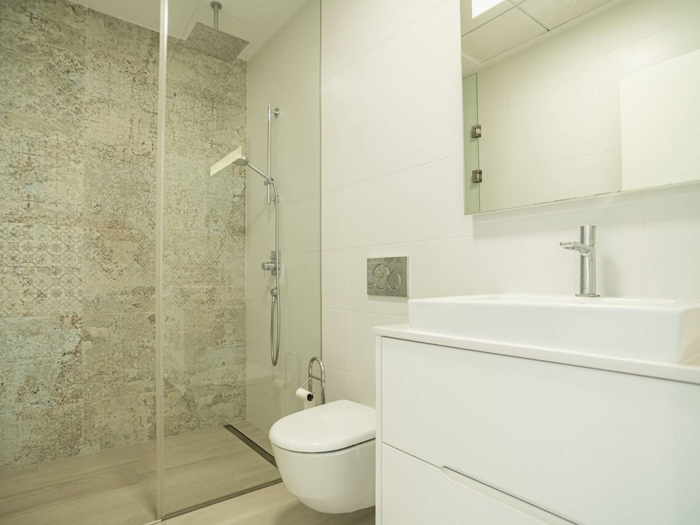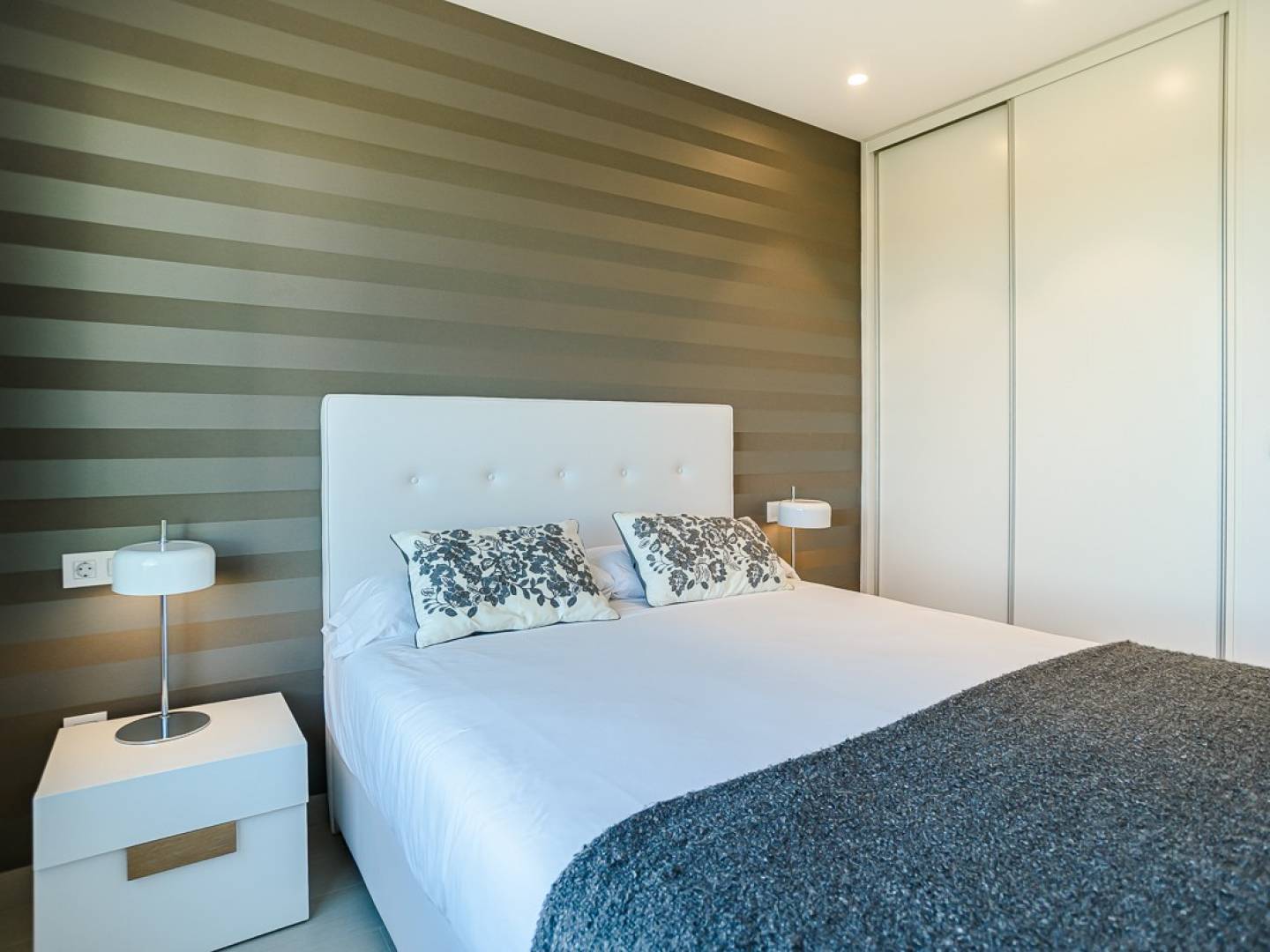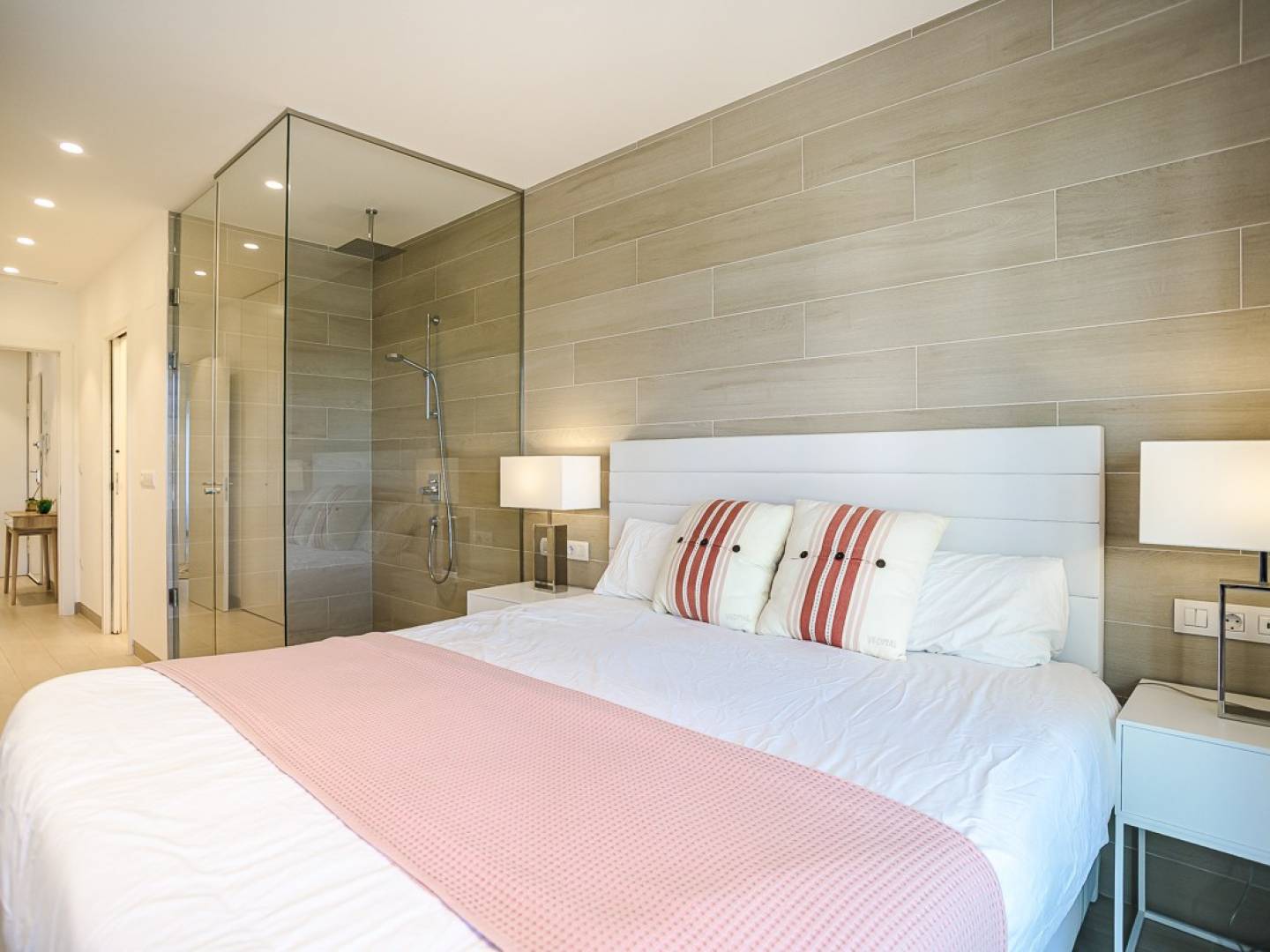 Das Hauptschlafzimmer verfügt über ein eigenes Bad und direkten Zugang zum Garten. Elektrische Rollläden sorgen für Komfort und Privatsphäre. Dieses Apartment ist für optimalen Komfort konzipiert und mit Klimaanlage , Hausautomationssystem , Alarmanlage , Internetzugang und Fernseher ausgestattet. Zur Wohnung gehören außerdem ein privater Tiefgaragenstellplatz von 12,5 m² und ein Abstellraum von 8 m² .