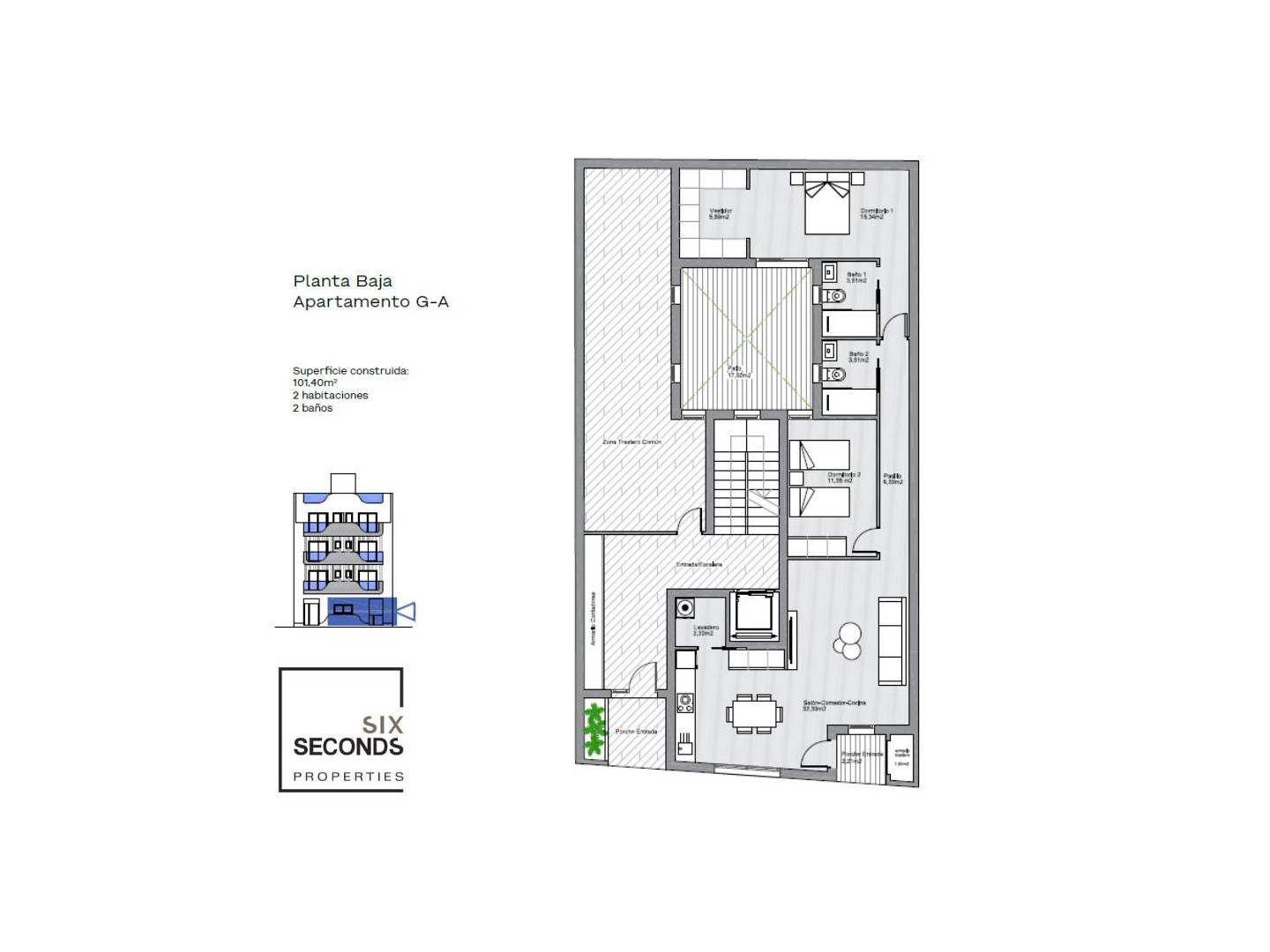 Bei Six Seconds Properties präsentieren wir Ihnen diese exklusive Kollektion von sieben modernen Apartments im Herzen von Torrevieja , wo modernes Design , Helligkeit und urbaner Komfort harmonisch miteinander verschmelzen. Dieser Wohnkomplex liegt in einer privilegierten Gegend , nur 1.000 Meter vom Strand Acequión entfernt und bietet alle wichtigen Dienstleistungen für einen anspruchsvollen und praktischen Lebensstil. Jedes Haus verfügt über geräumige Innenräume , hochwertige Oberflächen und eine sorgfältige Raumaufteilung , die Komfort und Wohlbefinden garantiert. Die Ostausrichtung bietet den ganzen Tag über sonnige Bereiche, während der exklusive Pool auf dem Dach mit Sonnenliegen und eingebauter Bank diesen Wohnkomplex in eine wahre mediterrane Oase verwandelt. Der Komplex bietet verschiedene Typologien: Erdgeschoss mit 2 Schlafzimmern und 2 Bädern , Zwischengeschosse mit 2 Schlafzimmern und 2 Bädern und zwei Penthäuser mit 1 Schlafzimmer und 2 Bädern mit privaten Terrassen , ideal, um das Klima der Costa Blanca zu genießen. Darüber hinaus verfügt das Gebäude über einen Aufzug mit Zugang zu allen Etagen, Parkplätze für Fahrräder und Elektroroller sowie eine Vorinstallation für Solarmodule und eine gemeinschaftliche Satellitenschüssel und bietet so die perfekte Balance zwischen Küstencharme und modernem Stadtleben .