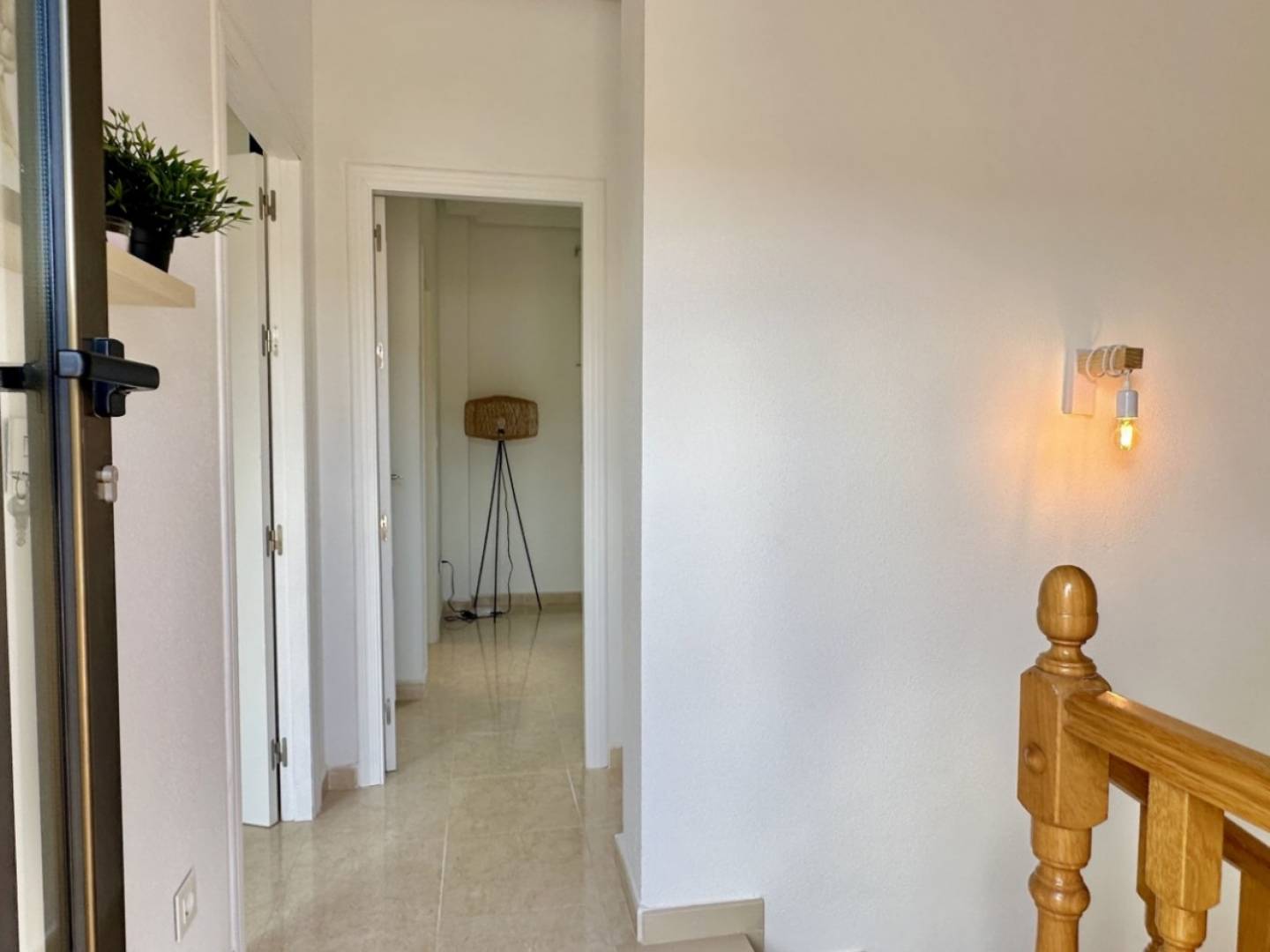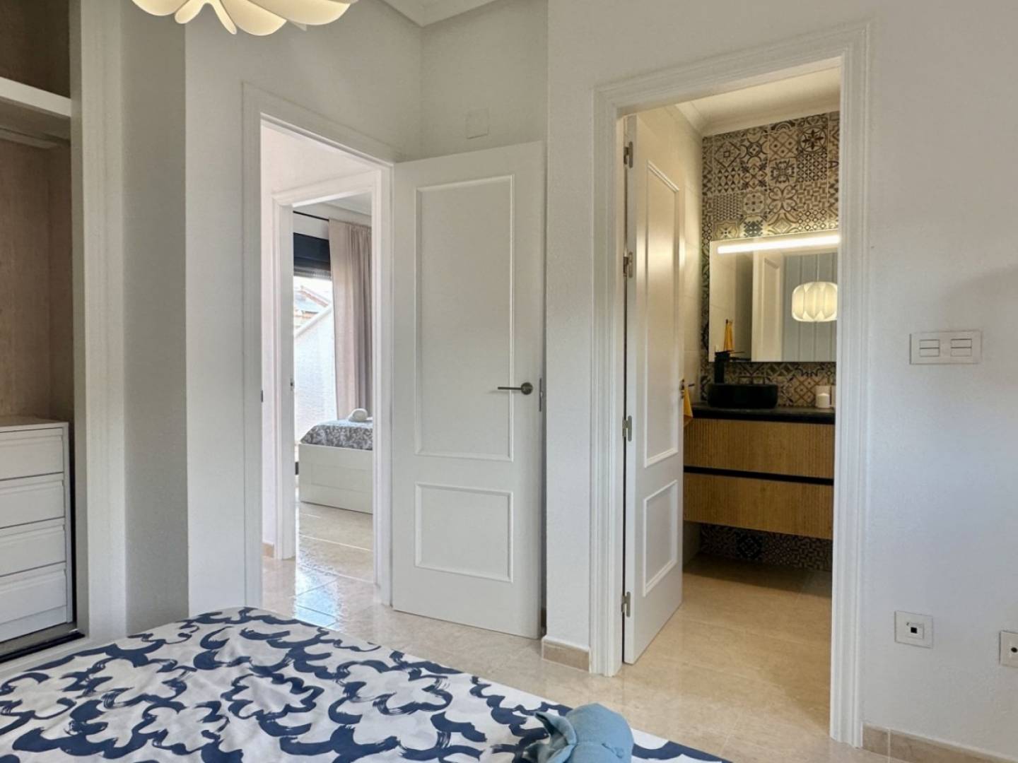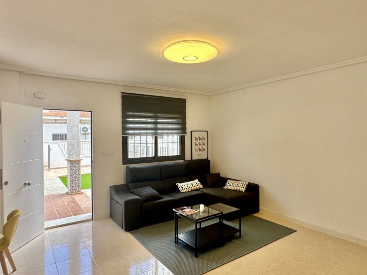 Wir freuen uns, dieses wunderschön renovierte Reihenhaus in einer ruhigen, aber dennoch zentralen Lage von San Miguel de Salinas zu präsentieren — die perfekte Kombination aus Komfort, Raum und modernem Wohnen. Dieses Haus mit 3 Schlafzimmern und 3 Badezimmern ist bezugsfertig und bietet alles, was Sie für einen festen Wohnsitz, ein Ferienhaus oder eine Investition benötigen. Top-Lage Ideal in einer gepflegten Urbanisation gelegen, nur wenige Gehminuten von zwei Restaurants und einer internationalen Schule entfernt. In kurzer Fahrentfernung erreichen Sie das Ortszentrum, Einkaufszentren und weitere Schulen — die perfekte Mischung aus Ruhe und Erreichbarkeit. Leben im Freien Ein großzügiger, pflegeleichter Vorgarten mit großer Terrasse lädt zum Essen im Freien, Entspannen mit einem Buch oder geselligen Abenden in der Sonne ein. Helle & funktionale Innenräume Das Erdgeschoss verfügt über ein lichtdurchflutetes Wohn- und Esszimmer mit stilvollen Oberflächen und einladender Atmosphäre. Die separate, voll ausgestattete Küche bietet moderne Geräte und direkten Zugang zum Hauswirtschaftsraum. Ebenfalls im Erdgeschoss befindet sich ein flexibles Schlafzimmer (derzeit als Einzelzimmer genutzt) und ein schön renoviertes Bad mit begehbarer Dusche — ideal für Gäste oder Personen, die ebenerdig wohnen möchten. Obergeschoss Im Obergeschoss befinden sich zwei großzügige Doppelschlafzimmer, jeweils mit eigenem Bad. Das Hauptschlafzimmer verfügt zusätzlich über einen privaten Balkon mit freiem Blick — perfekt für den Morgenkaffee oder die Abendbrise. Zusätzlicher Komfort: Zur Immobilie gehört der Zugang zu einer sicheren Gemeinschaftsgarage mit Abstellraum und einem privaten Parkplatz ein wertvolles Merkmal in dieser beliebten Gegend. Egal, ob Sie ein stilvolles neues Zuhause oder eine sichere Investition an der Costa Blanca suchen — dieses Reihenhaus ist eine hervorragende Gelegenheit. Kontaktieren Sie uns noch heute für eine private Besichtigung — dieses Objekt wird nicht lange verfügbar sein!