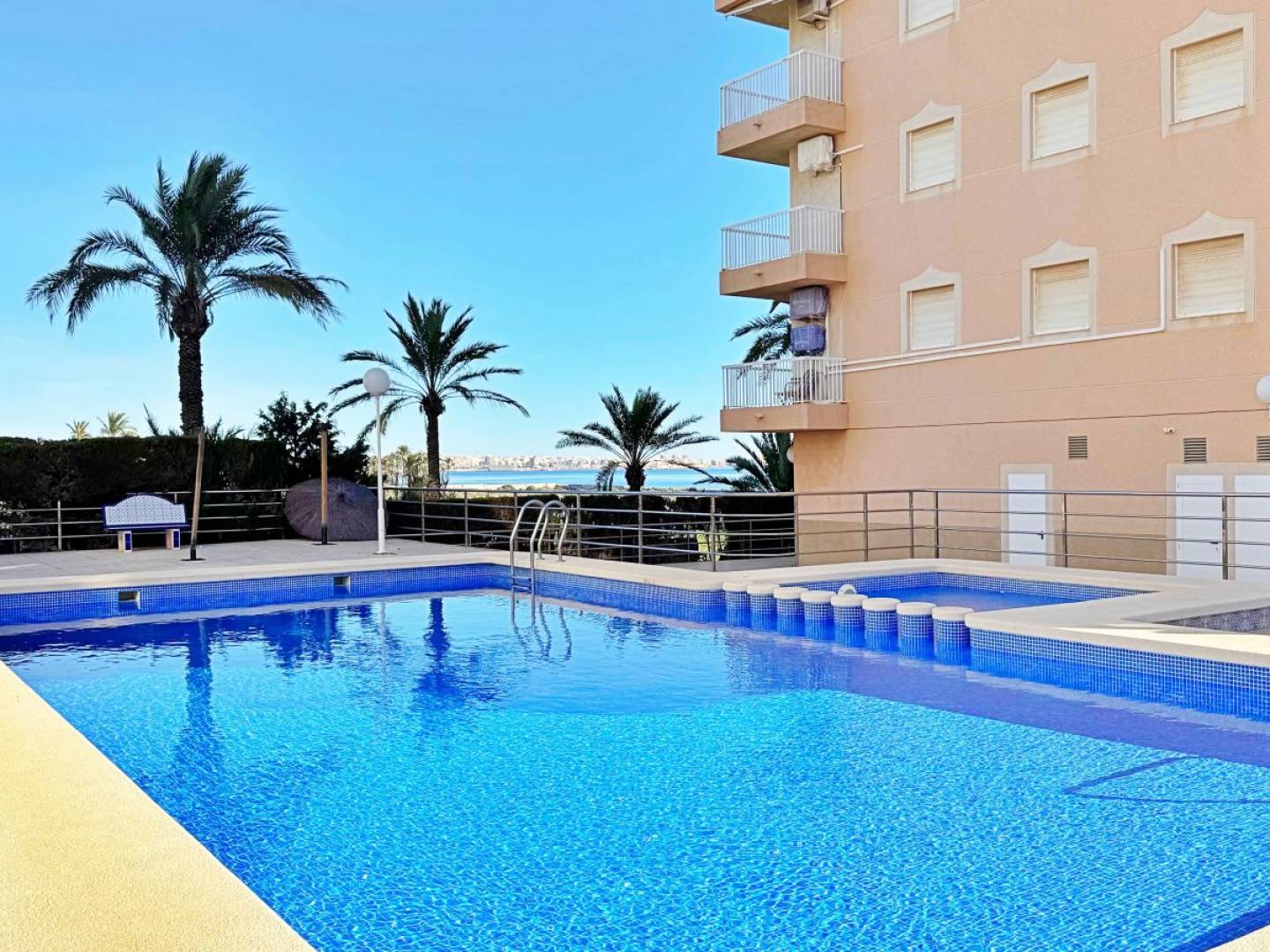 Wohnung zum Verkauf in Rocío del Mar, Torrevieja, in einer exklusiven Wohngegend neben Punta Prima, nur 200 Meter vom Meer entfernt. Diese 43 m² große Immobilie befindet sich in einer privaten Wohnanlage mit Gemeinschaftspool und bietet ganzjährig eine ruhige und familienfreundliche Atmosphäre. Die Wohnung ist in exzellentem Zustand und profitiert von einer Südausrichtung, die den ganzen Tag über für viel Tageslicht sorgt. Sie verfügt über ein helles Wohn-Esszimmer mit Zugang zu einer verglasten Terrasse, die zum Genießen des mediterranen Klimas einlädt, eine voll ausgestattete Küche, ein Schlafzimmer mit Einbauschrank und ein Badezimmer mit Badewanne und natürlicher Belüftung. Die Terrasse bietet einen schönen seitlichen Meerblick und ausreichend Platz für einen Esstisch mit Stühlen. Zur weiteren Ausstattung gehören eine Klimaanlage im Wohnzimmer, Markisen auf der Terrasse, Fliesenböden, ein Aufzug im Gebäude und barrierefreier Zugang. Die Wohnung ist bezugsfertig. Die private Anlage bietet einen großen Gemeinschaftspool, umgeben von Liegewiesen und gepflegten Gärten. Die privilegierte Lage, nur 200 Meter vom Meer entfernt und in fußläufiger Entfernung zu Supermärkten, Restaurants, öffentlichen Verkehrsmitteln und Freizeiteinrichtungen, macht diese Wohnung in Rocío del Mar, Torrevieja, zur idealen Wahl für alle, die Komfort und Bequemlichkeit suchen. Sie bietet eine hervorragende Kaufgelegenheit und eignet sich perfekt als Hauptwohnsitz, Ferienhaus oder Kapitalanlage mit hohem Vermietungspotenzial in einer der begehrtesten Küstenregionen der Costa Blanca.