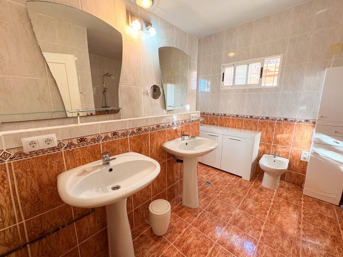 Das Haupthaus verfügt über drei Schlafzimmer , zwei Badezimmer (eines davon groß, eines mit Dusche), ein geräumiges Wohn-/Esszimmer , einen Teilkeller , eine Speisekammer und eine große, geschlossene Terrasse , die den Wohnraum ganzjährig erweitert. Das Anwesen ist mit Klimaanlage und Heizung ausgestattet und bietet somit optimalen Komfort zu jeder Jahreszeit.