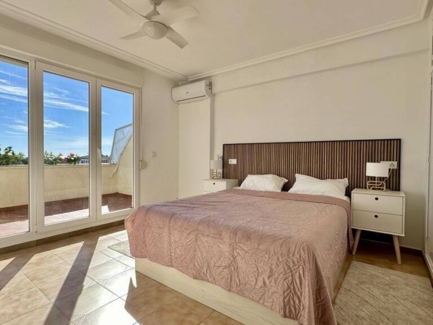 Entdecken Sie dieses prachtvolle Penthouse in Torrevieja – eine außergewöhnliche Immobilie, die erstklassige Lage , Komfort und mediterranes Flair vereint und sich ideal als Hauptwohnsitz oder Kapitalanlage eignet. Das elegante , 85 m² große Apartment befindet sich im dritten Stock und ist bequem mit dem Aufzug erreichbar. Es besticht durch viel Tageslicht und eine durchdachte Raumaufteilung. Das Apartment bietet zwei Schlafzimmer , eines davon mit direktem Zugang zur Terrasse , zwei Badezimmer , eine voll ausgestattete offene Küche und ein geräumiges Wohn-/Esszimmer mit Zugang zu einer spektakulären Terrasse. Das absolute Highlight dieser Immobilie sind die insgesamt 50 m² großen Terrassen mit atemberaubendem Meerblick – der ideale Ort zum Entspannen und Genießen der Natur. Das Apartment wird möbliert und klimatisiert übergeben. Es liegt in unmittelbarer Nähe zum Strand und allen wichtigen Annehmlichkeiten : Supermärkten, Restaurants, Geschäften, Apotheken und Freizeiteinrichtungen. Eine einmalige Gelegenheit für alle, die am Meer wohnen möchten, ohne auf das Stadtleben zu verzichten – in einer der begehrtesten Gegenden der Costa Blanca.