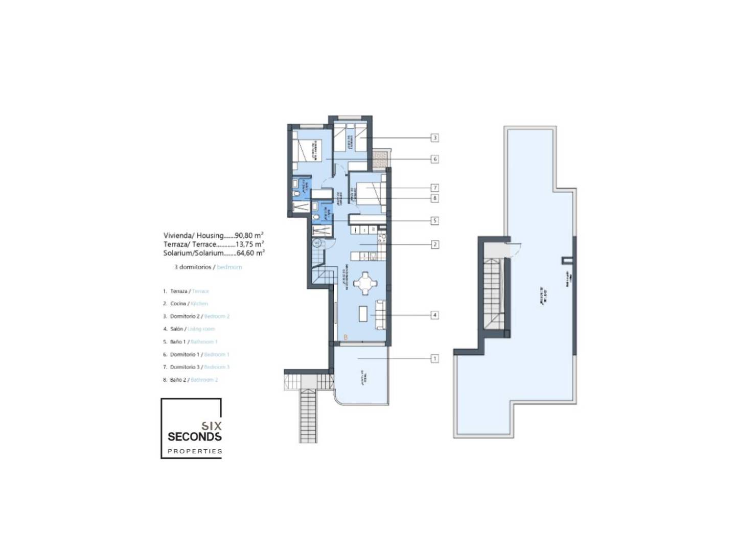 Im Herzen der Costa Blanca liegt dieser exklusive Bungalow , ein wahres Paradies für alle, die Wert auf Lebensqualität, Eleganz und Komfort legen. Das Anwesen bietet 90,80 m² Wohnfläche , verteilt auf drei Doppelzimmer , darunter eine Master-Suite mit eigenem Bad , sowie ein zweites separates Badezimmer mit hochwertiger Ausstattung. Der großzügige und helle Wohn- und Essbereich geht fließend in eine moderne, funktionale Küche im amerikanischen Stil über und bietet direkten Zugang zu einer 13,75 m² großen privaten Terrasse – ideal, um das mediterrane Klima zu genießen. Das absolute Highlight ist das spektakuläre , 66,70 m² große private Solarium – eine Oase der Ruhe und Entspannung, die zum Verweilen, Genießen ungestörter Momente in der Sonne einlädt. Das Haus wurde so konzipiert, dass natürliches Licht und Belüftung optimal genutzt werden und vereint zeitgenössische Architektur, harmonisch integrierte Außenbereiche und Liebe zum Detail . Ein Parkplatz und ein Abstellraum sorgen für zusätzlichen Komfort. Eine einzigartige Gelegenheit für alle, die in ein von Architekten entworfenes Haus an der Costa Blanca investieren oder darin wohnen möchten, wo Design, Umwelt und Lebensstil in perfekter Harmonie zusammenkommen.