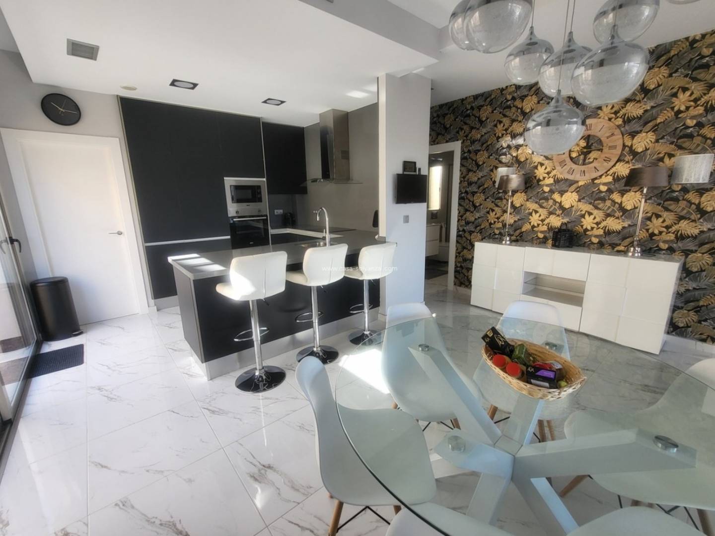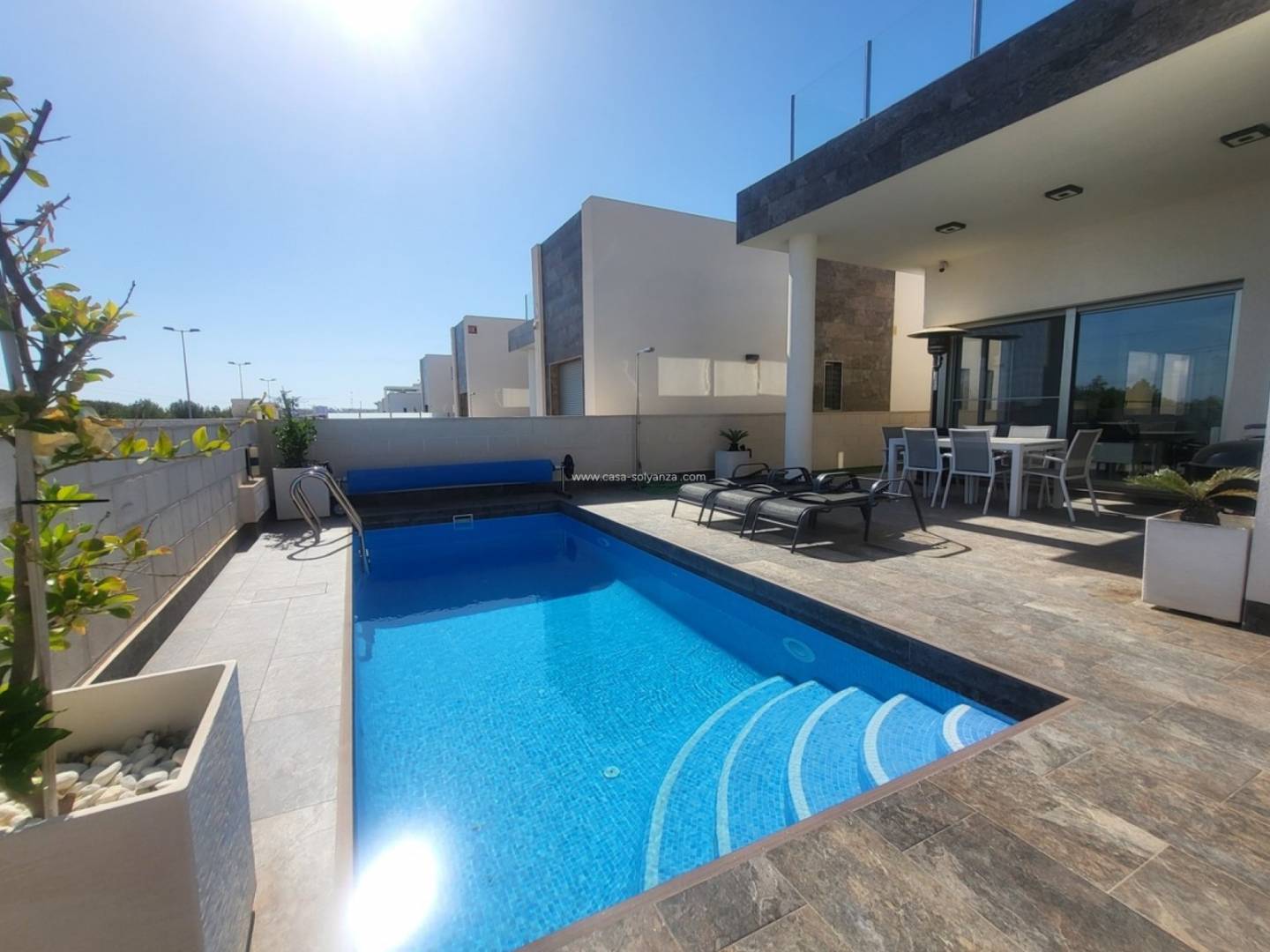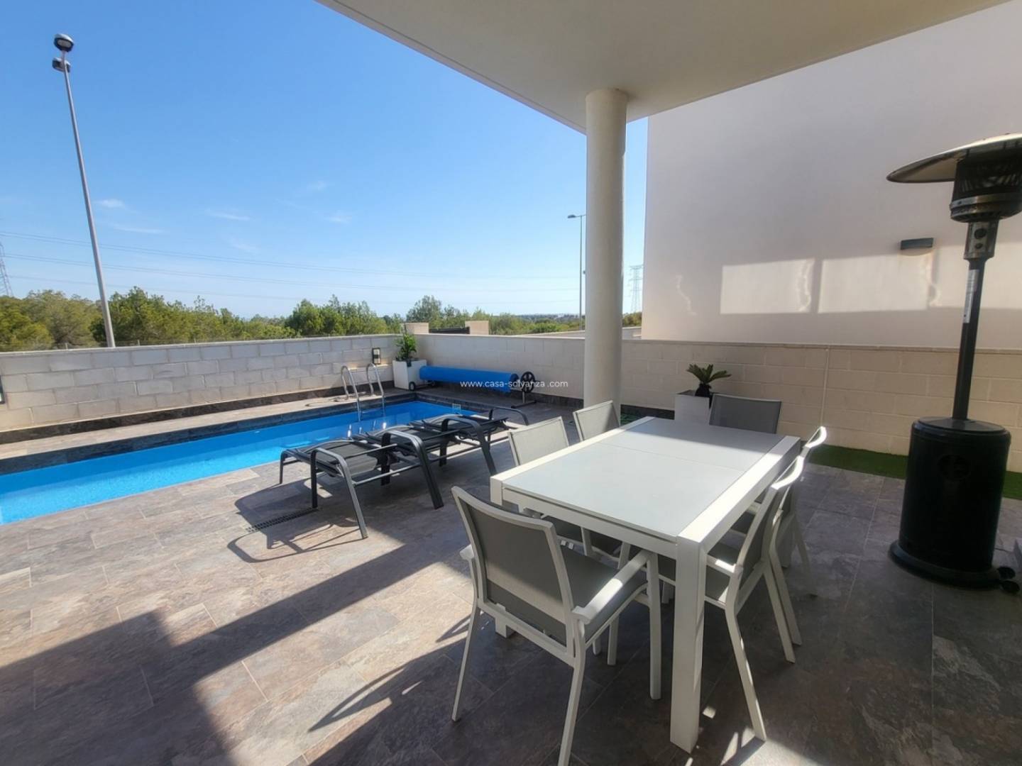 Entdecken Sie diese atemberaubende, ebenerdige Designervilla in einer exklusiven Wohngegend . Sie bietet ein privilegiertes Ambiente, das Privatsphäre, modernes Design und unberührte Natur vereint. Das Anwesen verfügt über drei geräumige Schlafzimmer mit Einbauschränken und zwei Badezimmer , eines davon en suite , für eine komfortable und funktionale Raumaufteilung. Der helle Wohn- und Essbereich , dank großer Erkerfenster lichtdurchflutet, öffnet sich direkt zum Garten und schafft so einen harmonischen Übergang zwischen Innen- und Außenbereich. Die voll ausgestattete offene Küche geht nahtlos in den Wohnbereich über und wird durch einen separaten Hauswirtschaftsraum mit Abstellraum ergänzt. Die Villa ist mit Smart-Home-Technologie ausgestattet, die optimalen Komfort, erhöhte Sicherheit und hervorragende Energieeffizienz gewährleistet. Im Außenbereich erwarten Sie ein privater Swimmingpool und ein spektakuläres 104 m² großes Solarium mit voll ausgestatteter Sommerküche, Markise, Whirlpool, WLAN und Panoramablick auf den Salar de Uyuni in Torrevieja – eine wahre Oase, um den mediterranen Lebensstil zu genießen. Zu den exklusiven Ausstattungsmerkmalen gehören eine Alarmanlage, Überwachungskameras, eine Gegensprechanlage, eine individuell regulierbare Klimaanlage in jedem Zimmer, ein Abstellraum im Außenbereich und ein wunderschön angelegter Garten . Die Villa liegt in der Nähe des Golfplatzes Villamartín , mit guter Anbindung an Supermärkte, Restaurants und Geschäfte sowie nur 10 Autominuten von den Stränden von La Zenia und dem Einkaufszentrum Zenia Boulevard entfernt . Sie bietet eine einzigartige Investitionsmöglichkeit und ein außergewöhnliches Wohnumfeld an der Costa Blanca .
