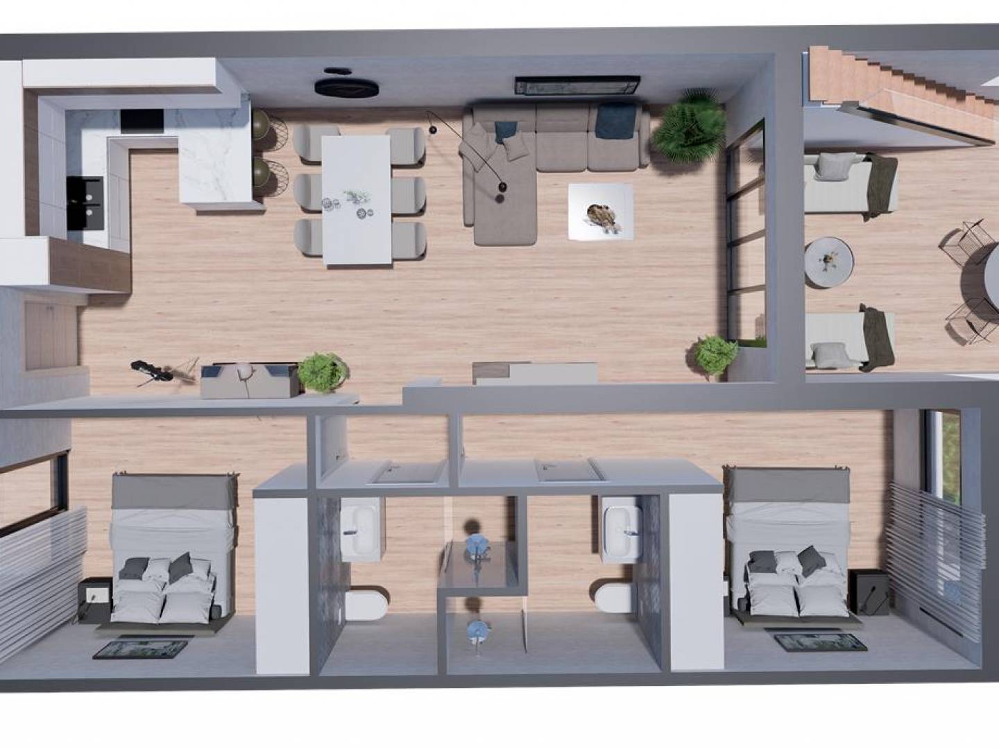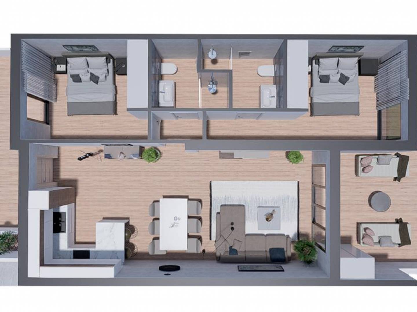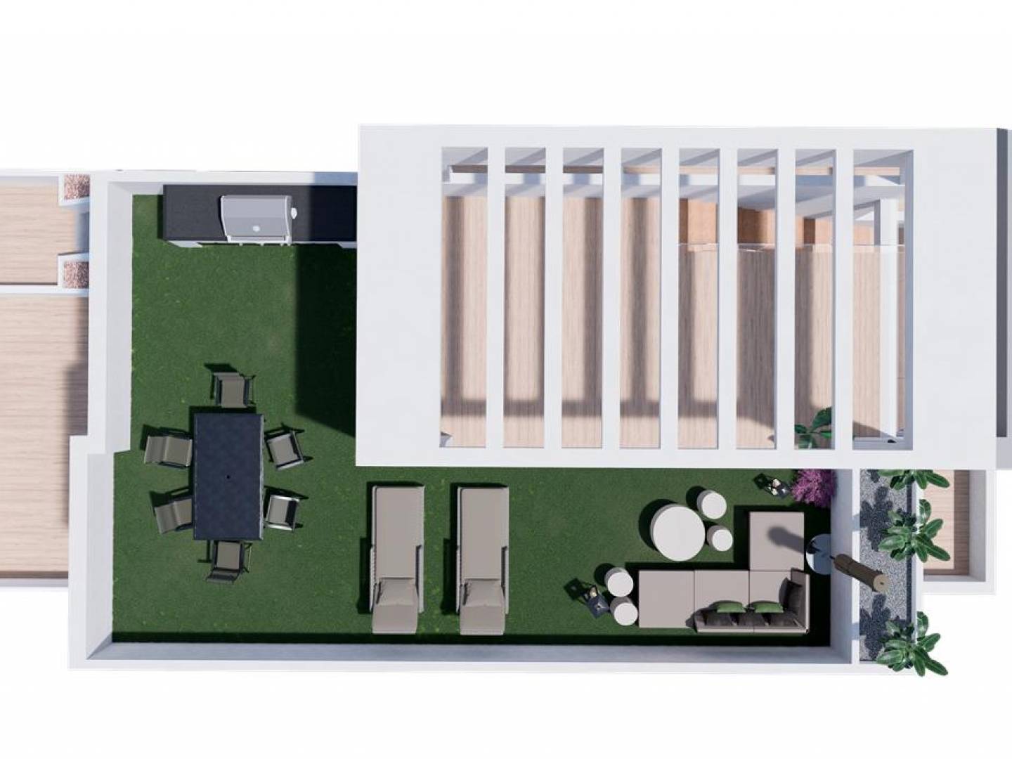 Schöner Bungalow zum Verkauf in Torrevieja in einer privaten Wohngegend mit drei Gemeinschaftspools, mit Blick auf Torreviejas Laguna Salada und das Meer. 1,5 km von La Laguna und 3,5 km von den besten Stränden von Torrevieja und Punta Prima entfernt. Mit allen grundlegenden Annehmlichkeiten im Umkreis von 200 m, wie Supermärkten, Geschäften, Apotheken, Bars, Restaurants usw. Ideale Lage, um die Ruhe zu Hause zu genießen, ohne auf den Komfort zu verzichten, den eine Stadt bieten kann: Einkaufszentren, Nachtleben, Messen für den Besuch mit Kindern, Vergnügungsparks, Promenaden, Golfclubs, alle Wassersportarten, die Sie sich vorstellen können, genießen Sie die Natur, und vieles mehr. Bungalow im Erdgeschoss von 131,07 m² , mit zwei Terrassen von insgesamt 57,00 m² , von denen aus Sie die sonnigen Tage des Mittelmeers genießen können. Innenraum mit einem geräumigen Wohnzimmer, das an eine amerikanische Küche mit Frühstücksbar auf der Halbinsel angeschlossen ist, zwei Doppelzimmer, eines davon en suite mit Bad, integriert, ein separates Badezimmer und eine Waschküche mit Zugang von außen. PARKPLATZ : 10.000€ INKLUSIVE PREIS