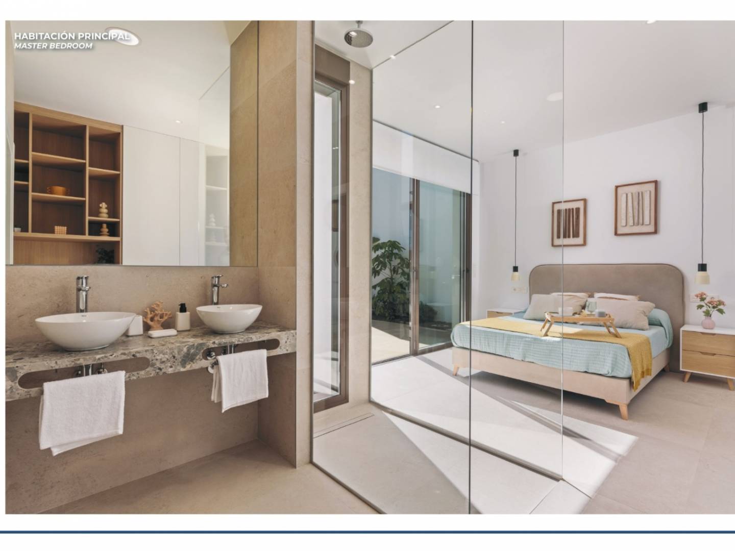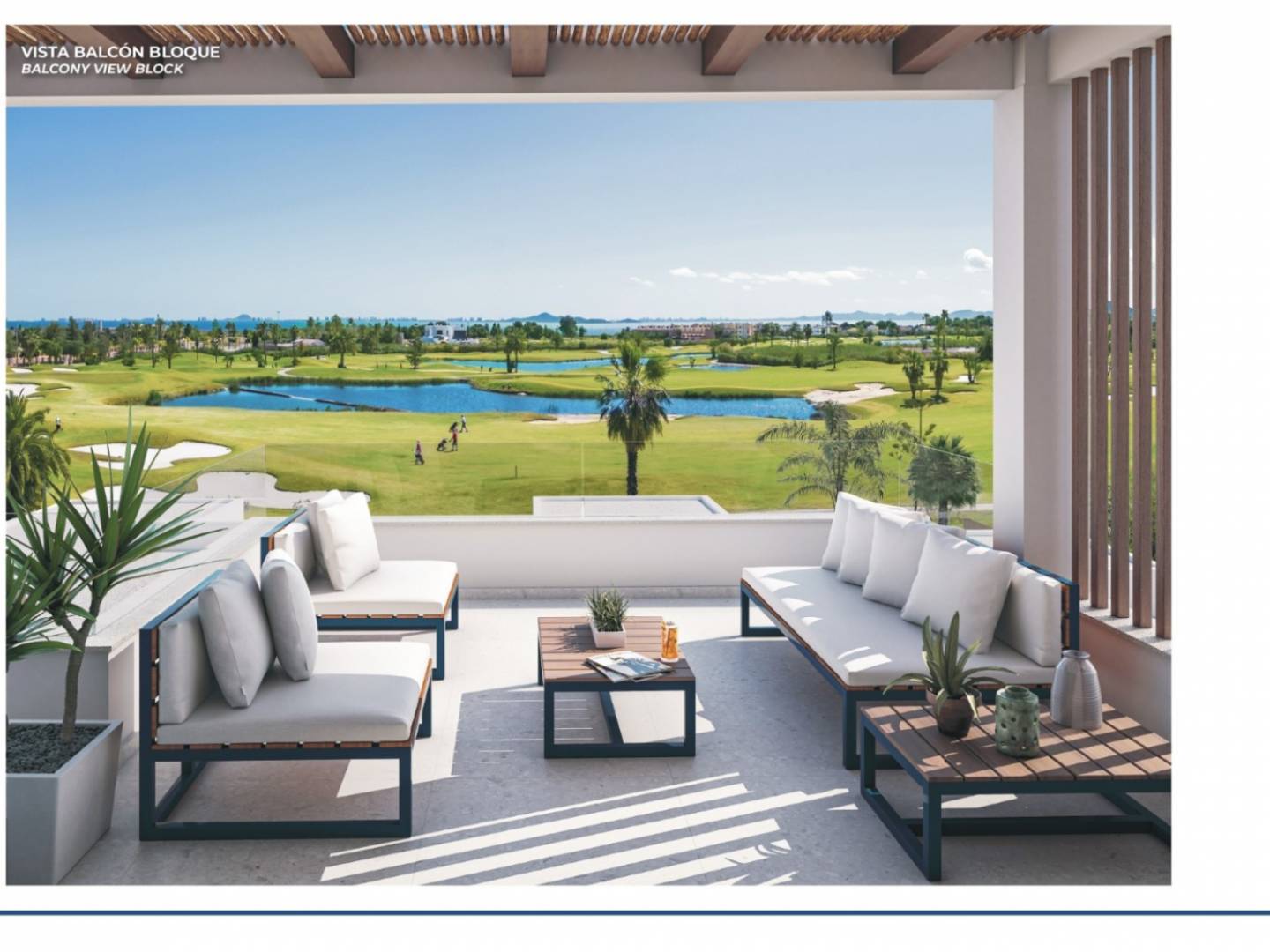 Erdgeschosswohnung von 71,40 m² , die sich auf ein geräumiges Wohnzimmer verteilt, das an eine schöne offene Küche mit Frühstücksbar auf der Halbinsel angeschlossen ist, Zugang zu einer großen Terrasse von 38,25 m² mit unglaublichem Blick auf den GOLFPLATZ, zwei Doppelzimmer mit Einbauschränken, Eines davon ist eine Suite mit eigenem Bad und separatem Badezimmer.