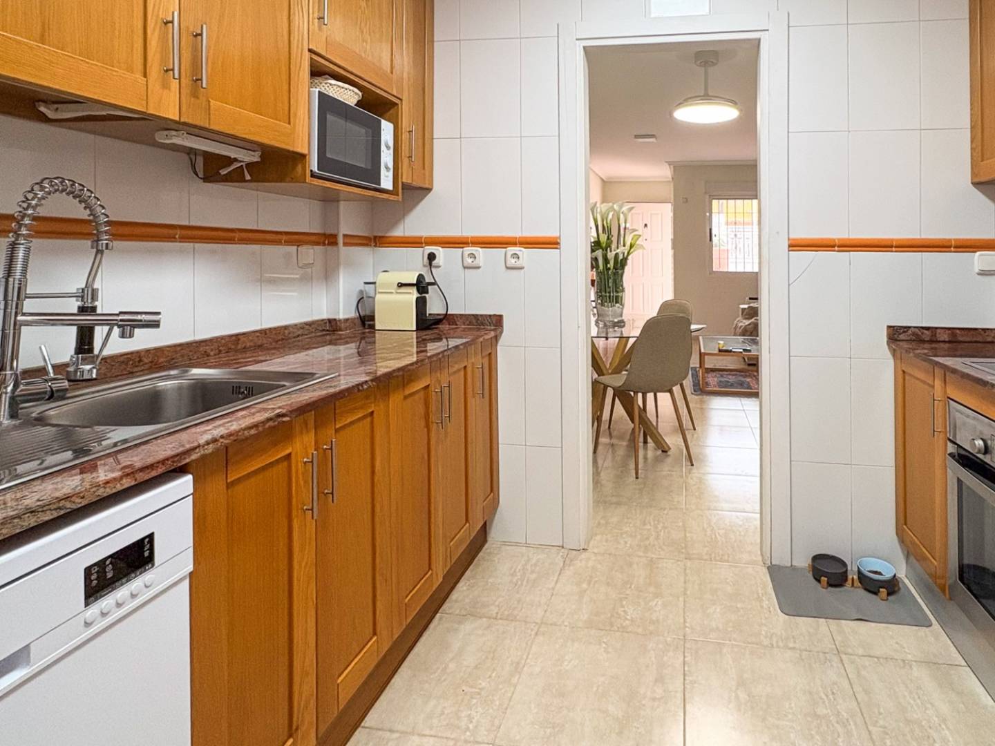 Dieses Anwesen bietet 83 m² Wohnfläche auf einem 233 m² großen Grundstück . Sein größter Pluspunkt ist der große, private Garten mit Veranda – ideal, um das mediterrane Klima zu genießen, gesellige Treffen im Freien zu veranstalten oder einfach nur zu entspannen. Im Inneren befinden sich drei Schlafzimmer , zwei Badezimmer und eine separate, voll ausgestattete und funktionale Küche in einwandfreiem Zustand .