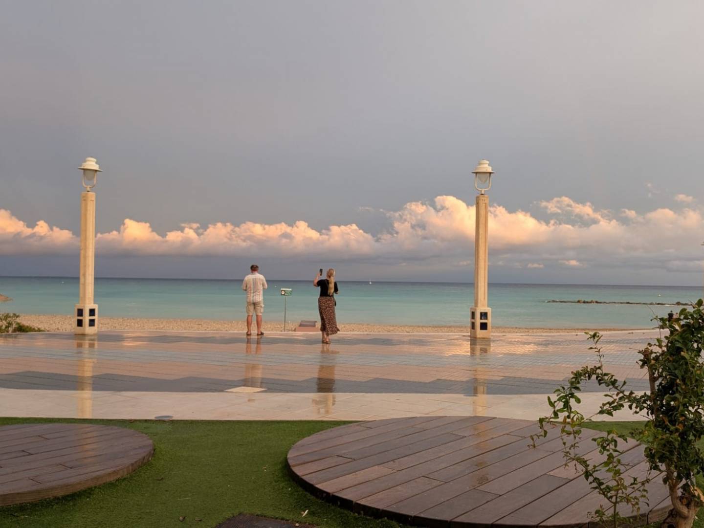 Das geräumige und helle Wohn- und Esszimmer öffnet sich zu großen Fenstern mit Meerblick und schafft so einen einladenden und lichtdurchfluteten Raum. Vom Esszimmer aus gelangt man in eine geräumige Küche , die ebenfalls Fenster mit Blick auf das Mittelmeer bietet.