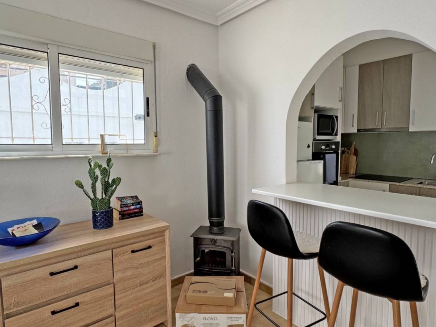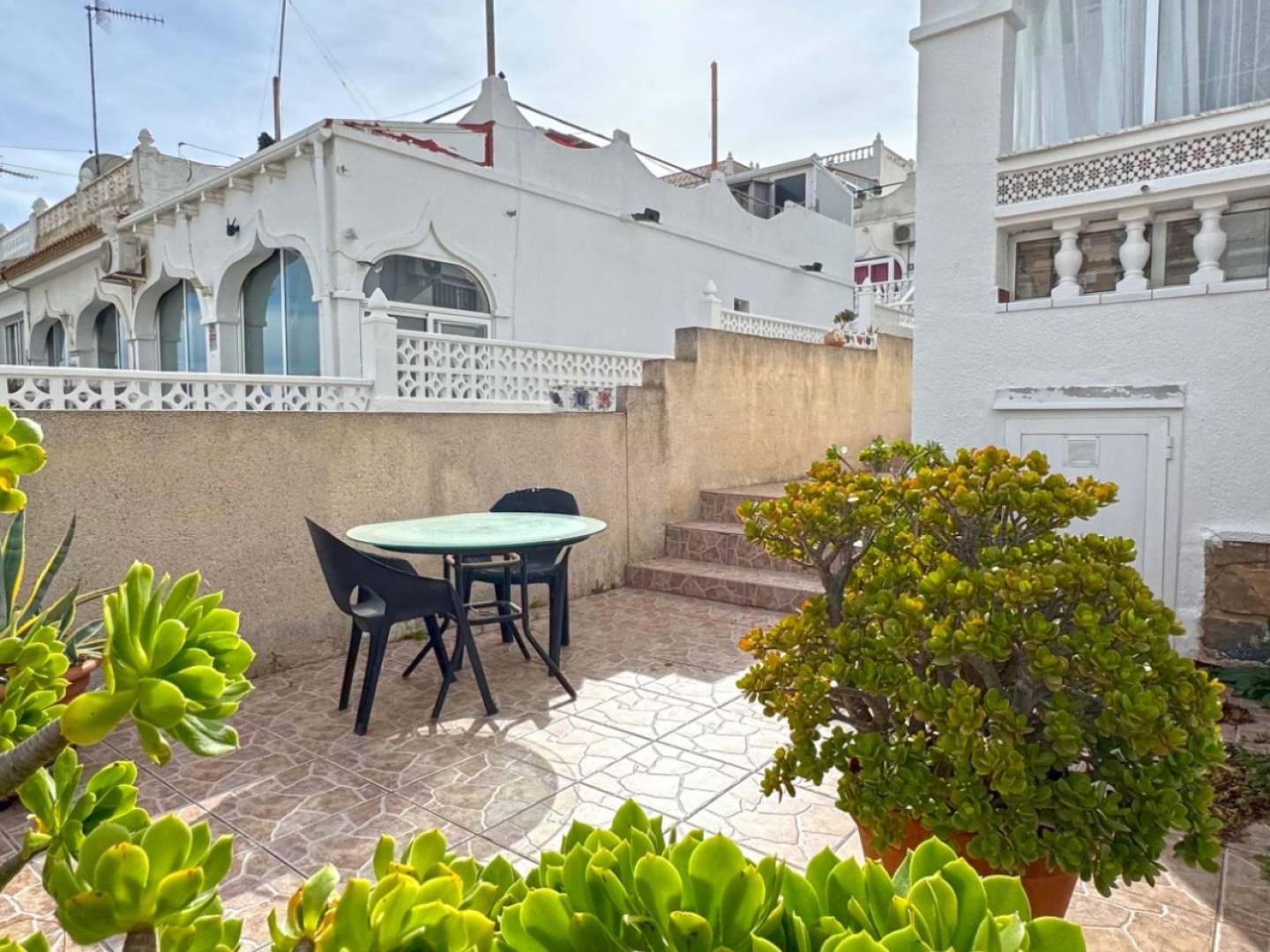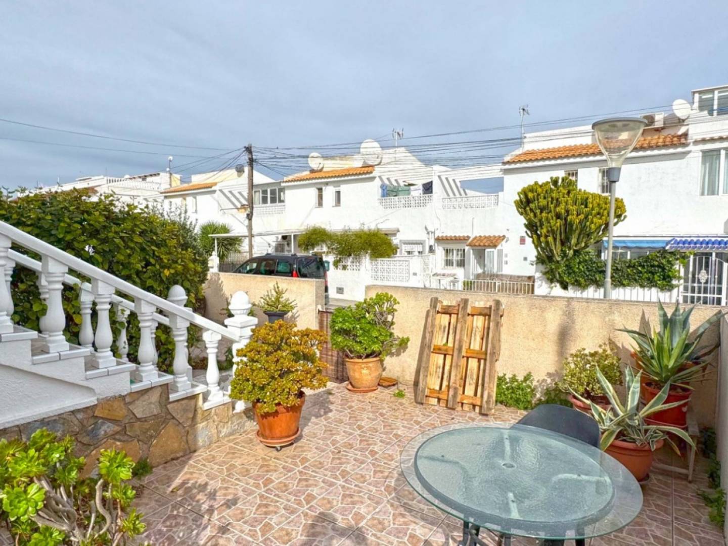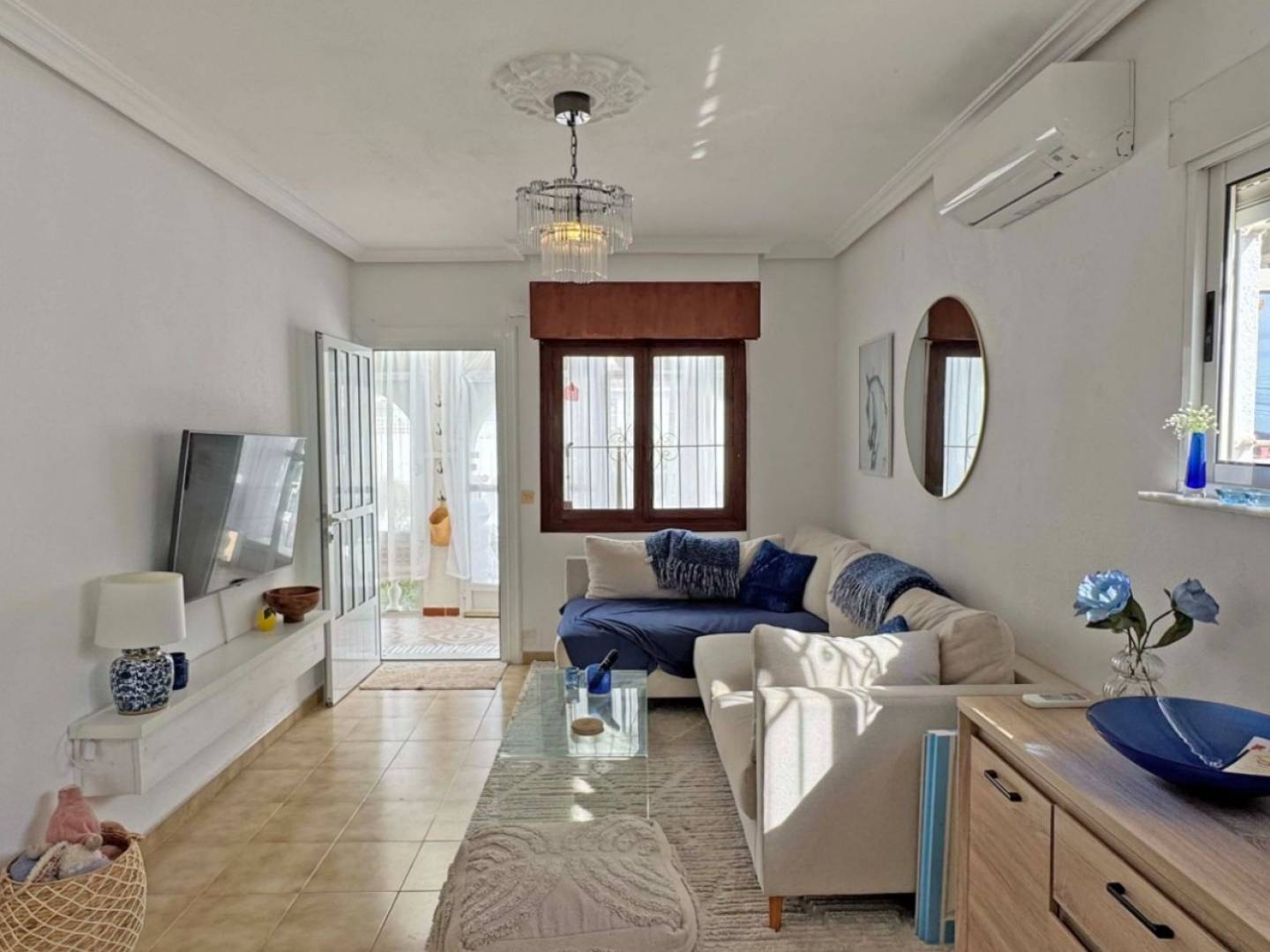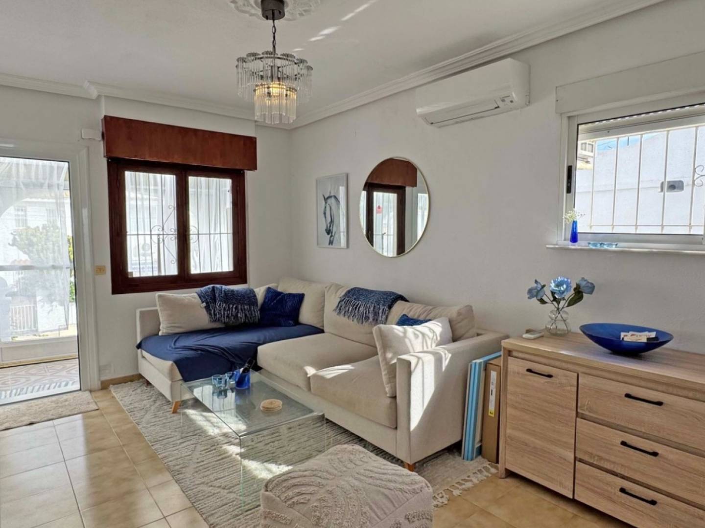 Dieses gepflegte Reihenhaus befindet sich in San Miguel de las Salinas und bietet komfortables Wohnen mit großzügigen Außenflächen und schönem Blick auf die Salzseen. Die Immobilie verfügt über 2 Schlafzimmer mit Einbauschränken sowie 1 Badezimmer. Die Materialien für eine Badezimmerrenovierung wurden bereits vom aktuellen Eigentümer gekauft es fallen lediglich die Arbeitskosten an. Das Bild des renovierten Badezimmers ist eine Visualisierung, die zeigt, wie das Badezimmer mit den vom Eigentümer ausgewählten Materialien aussehen könnte, welche in der Immobilie verbleiben. Der Innenbereich bietet einen offenen Wohn- und Essbereich, der für ein helles und funktionales Raumgefühl sorgt. Das Haus wird möbliert verkauft und ist sofort bezugs- oder vermietbereit. Außen stehen eine Terrasse, ein Patio sowie ein umlaufender Garten zur Verfügung, ideal zum Genießen des mediterranen Klimas. Das private Solarium im oberen Bereich bietet schöne Ausblicke auf die Salzseen. Zusätzlich gibt es einen Keller mit Stauraum sowie einen separaten Abstellraum mit Waschbereich und Boiler. Dank der Nordausrichtung herrscht ganzjährig ein angenehmes Raumklima. Eine ideale Immobilie als Dauerwohnsitz, Ferienhaus oder Kapitalanlage an der Costa Blanca.