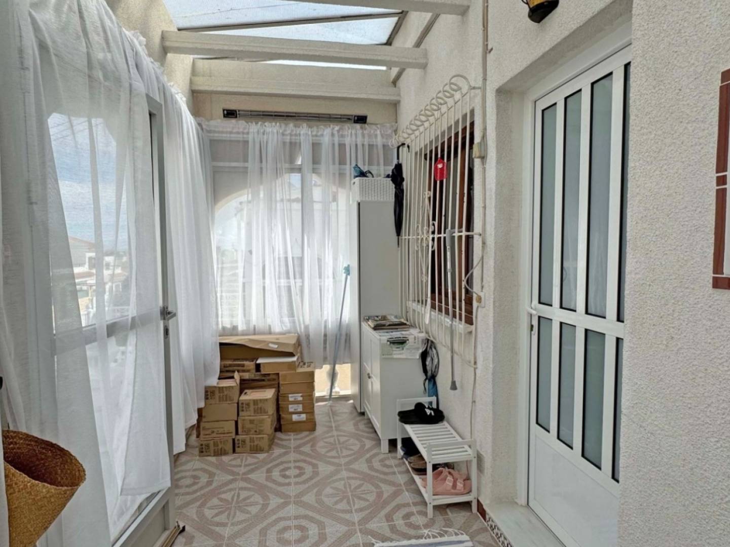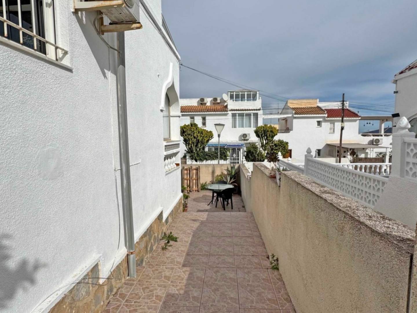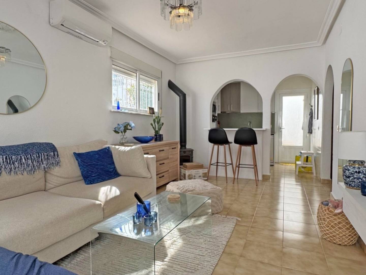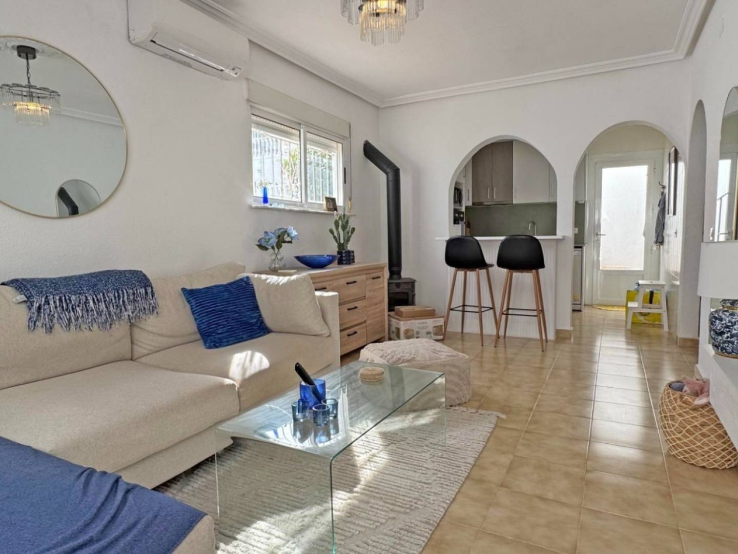 Dieses gepflegte Reihenhaus befindet sich in San Miguel de las Salinas und bietet komfortables Wohnen mit großzügigen Außenflächen und schönem Blick auf die Salzseen. Die Immobilie verfügt über 2 Schlafzimmer mit Einbauschränken sowie 1 Badezimmer. Die Materialien für eine Badezimmerrenovierung wurden bereits vom aktuellen Eigentümer gekauft es fallen lediglich die Arbeitskosten an. Das Bild des renovierten Badezimmers ist eine Visualisierung, die zeigt, wie das Badezimmer mit den vom Eigentümer ausgewählten Materialien aussehen könnte, welche in der Immobilie verbleiben. Der Innenbereich bietet einen offenen Wohn- und Essbereich, der für ein helles und funktionales Raumgefühl sorgt. Das Haus wird möbliert verkauft und ist sofort bezugs- oder vermietbereit. Außen stehen eine Terrasse, ein Patio sowie ein umlaufender Garten zur Verfügung, ideal zum Genießen des mediterranen Klimas. Das private Solarium im oberen Bereich bietet schöne Ausblicke auf die Salzseen. Zusätzlich gibt es einen Keller mit Stauraum sowie einen separaten Abstellraum mit Waschbereich und Boiler. Dank der Nordausrichtung herrscht ganzjährig ein angenehmes Raumklima. Eine ideale Immobilie als Dauerwohnsitz, Ferienhaus oder Kapitalanlage an der Costa Blanca.