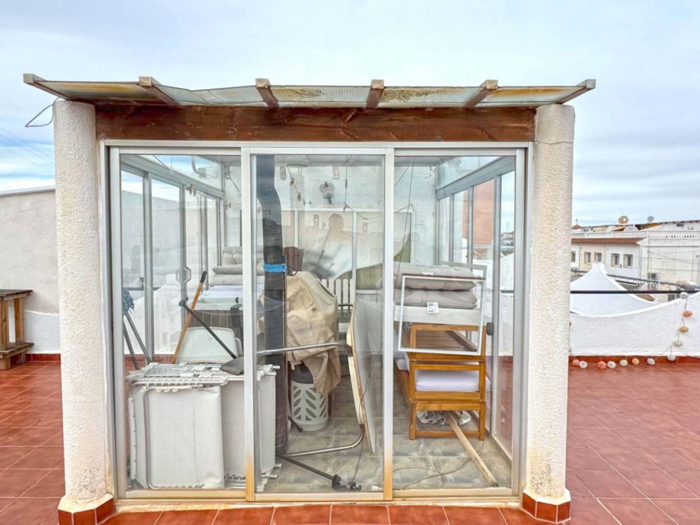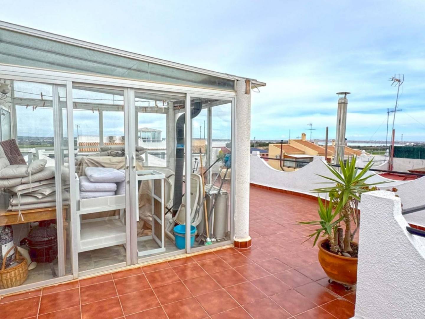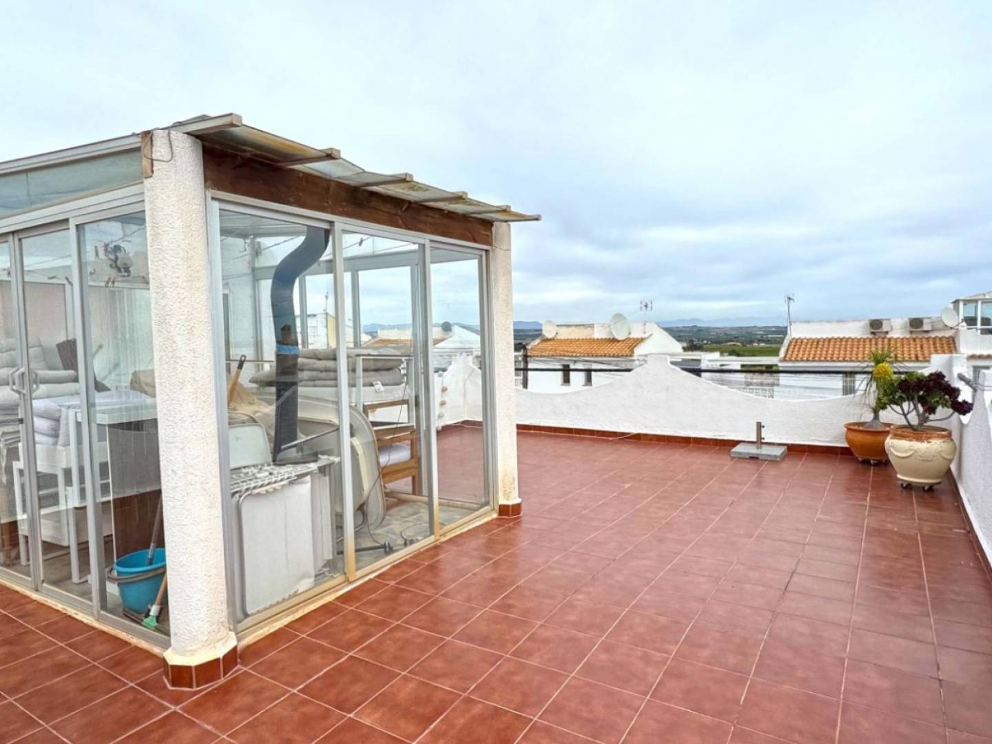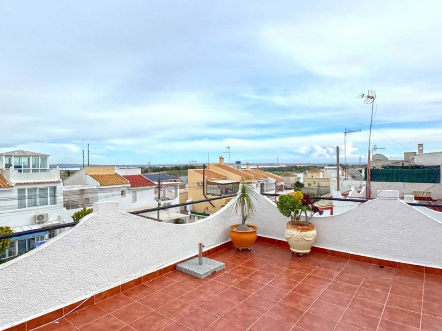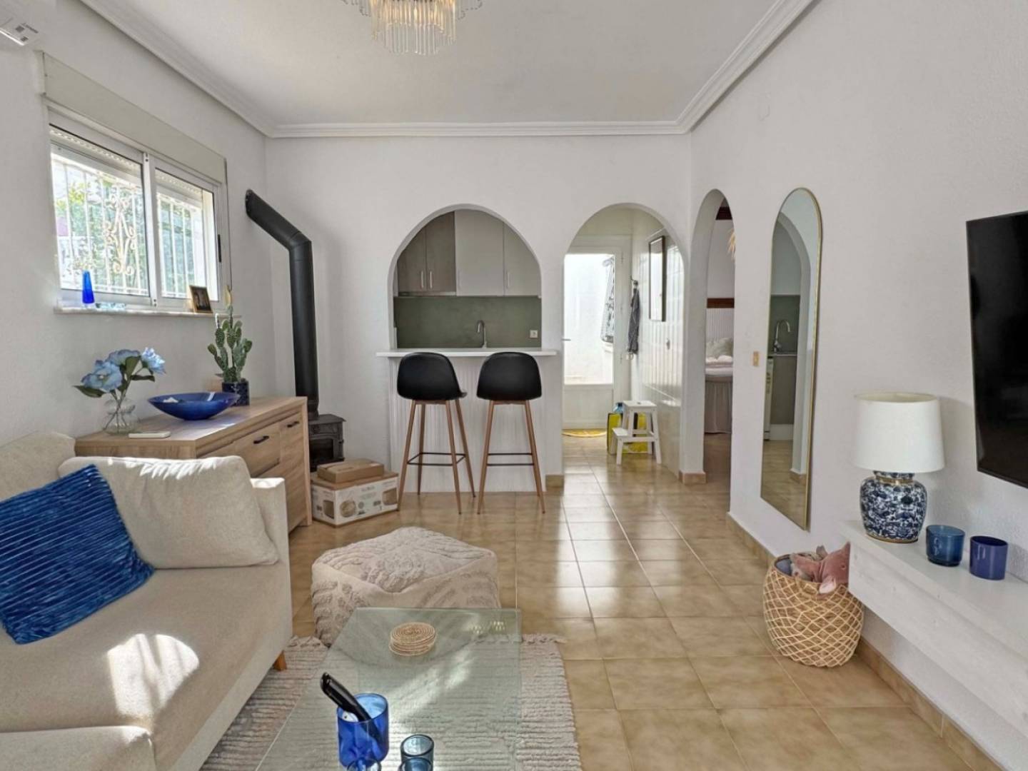 Dieses gepflegte Reihenhaus befindet sich in San Miguel de las Salinas und bietet komfortables Wohnen mit großzügigen Außenflächen und schönem Blick auf die Salzseen. Die Immobilie verfügt über 2 Schlafzimmer mit Einbauschränken sowie 1 Badezimmer. Die Materialien für eine Badezimmerrenovierung wurden bereits vom aktuellen Eigentümer gekauft es fallen lediglich die Arbeitskosten an. Das Bild des renovierten Badezimmers ist eine Visualisierung, die zeigt, wie das Badezimmer mit den vom Eigentümer ausgewählten Materialien aussehen könnte, welche in der Immobilie verbleiben. Der Innenbereich bietet einen offenen Wohn- und Essbereich, der für ein helles und funktionales Raumgefühl sorgt. Das Haus wird möbliert verkauft und ist sofort bezugs- oder vermietbereit. Außen stehen eine Terrasse, ein Patio sowie ein umlaufender Garten zur Verfügung, ideal zum Genießen des mediterranen Klimas. Das private Solarium im oberen Bereich bietet schöne Ausblicke auf die Salzseen. Zusätzlich gibt es einen Keller mit Stauraum sowie einen separaten Abstellraum mit Waschbereich und Boiler. Dank der Nordausrichtung herrscht ganzjährig ein angenehmes Raumklima. Eine ideale Immobilie als Dauerwohnsitz, Ferienhaus oder Kapitalanlage an der Costa Blanca.