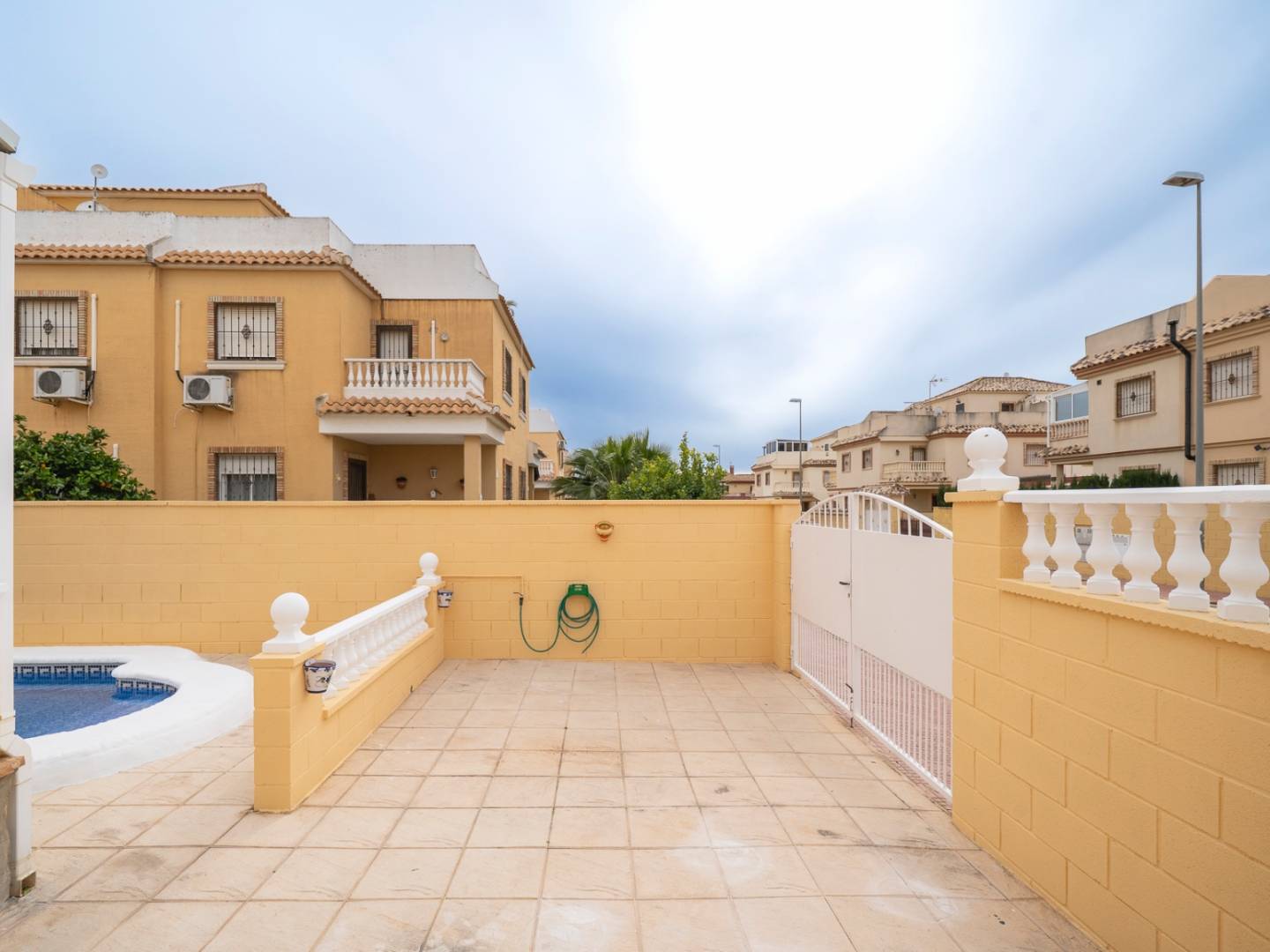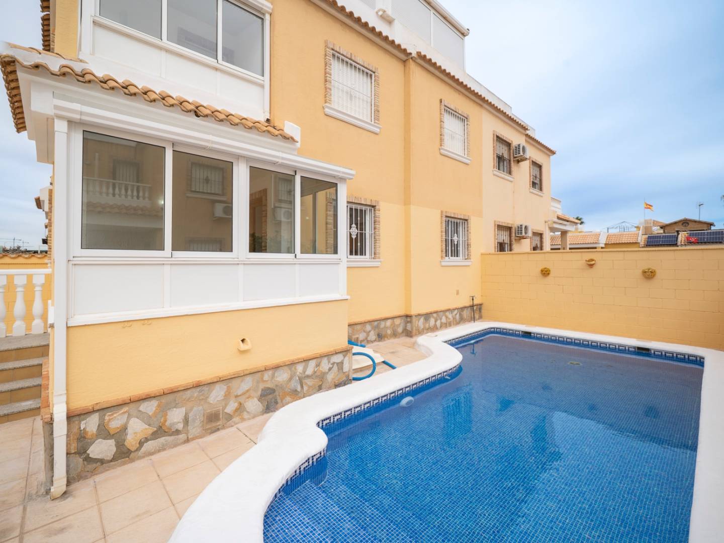 Die Immobilie erstreckt sich über zwei Etagen plus Solarium und befindet sich auf einem privaten Grundstück mit Garten und eigenem Pool, innerhalb einer Wohnanlage mit zwei Gemeinschaftspools in Ciudad Quesada (Rojales). Im Erdgeschoss befinden sich das Grundstück mit Terrasse und privatem Pool, ein verglaster Eingangsbereich, Wohn- und Essbereich, separate Küche mit neuen Möbeln und schwarzer Marmorarbeitsplatte sowie ein komplettes Badezimmer. Die erste Etage verfügt über drei Schlafzimmer, das Hauptschlafzimmer mit Einbauschrank und Zugang zu einer verglasten Terrasse, sowie ein weiteres Badezimmer. Im oberen Stockwerk befinden sich ein 25 m² großes Solarium und ein verglaster Turmraum von 8 m², ideal als Abstellraum oder Mehrzweckraum. Gute Lage nahe Supermärkten, Naturgebieten und allen Dienstleistungen, nur wenige Minuten vom Zentrum von Rojales und den Stränden entfernt.