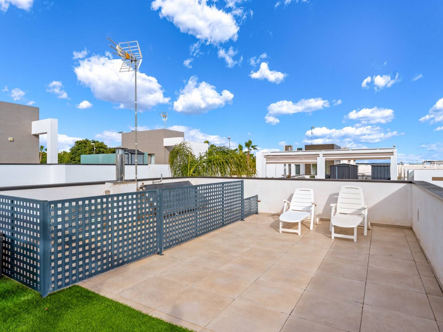 Das Anwesen bietet einen 73 m² großen Privatgarten , ideal zum Entspannen, Essen im Freien oder als gemütliche Oase der Ruhe, sowie einen privaten Swimmingpool, der Privatsphäre und Komfort garantiert. Für zusätzlichen Komfort sorgen Jalousien und zwei Aluminium-Pergolen : eine auf der Hauptterrasse, perfekt für Mahlzeiten im Schatten, und die andere auf dem Solarium , ein idealer Ort zum Sonnenbaden, Lesen oder Entspannen bei Sonnenuntergang.