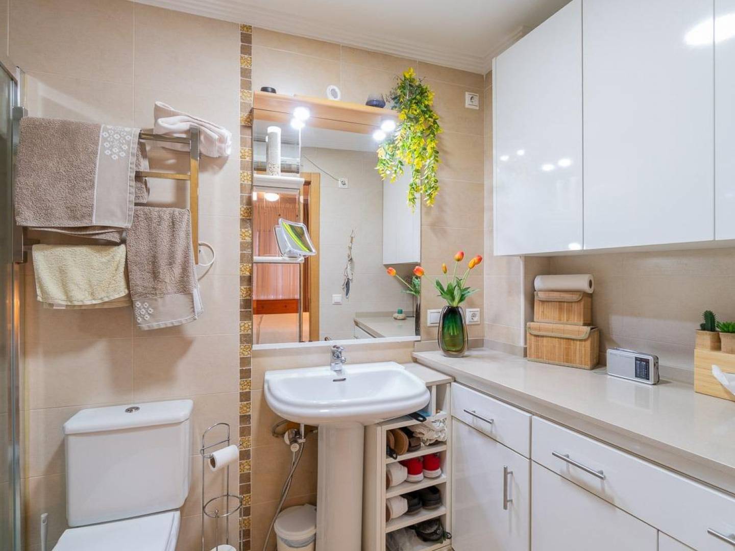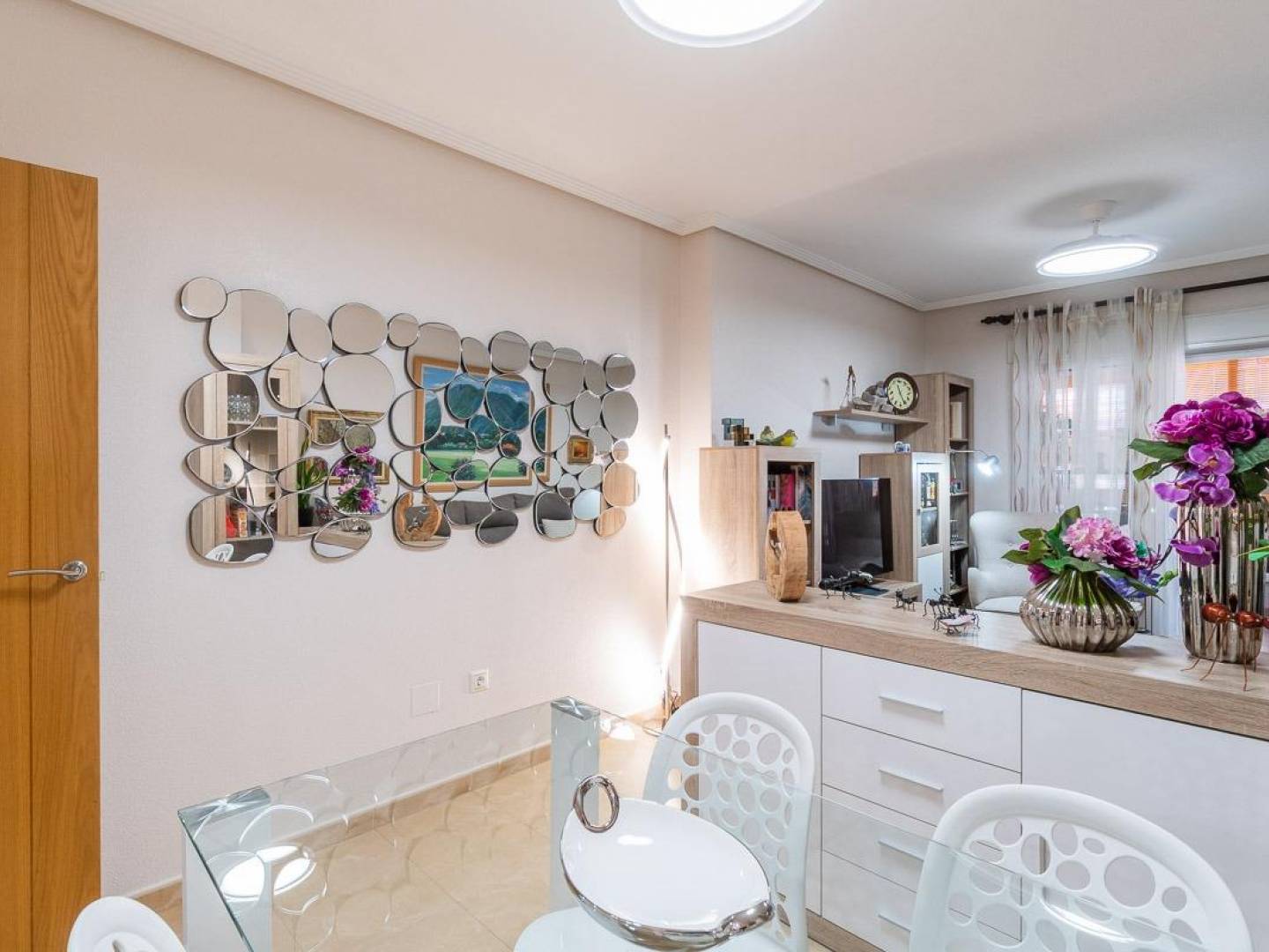 Entdecken Sie diese wunderschöne Wohnung im Herzen von Torrevieja, nur 520 Meter vom Meer entfernt, ganz in der Nähe der Strandpromenade und der Strände, mit allen Dienstleistungen in unmittelbarer Umgebung ein Auto ist im Alltag nicht notwendig.~~Die Wohnung verfügt über 89 m2 Wohnfläche und eine angenehme Westausrichtung, ideal für viel Tageslicht und schöne Sonnenuntergänge. Sie ist bezugsfertig, sehr gepflegt und mit hochwertigen Ausstattungsmerkmalen versehen.~~Sie bietet zwei großzügige Doppelschlafzimmer, beide mit Einbauschränken, eines davon mit Bad en suite, was zusätzlichen Komfort und Privatsphäre schafft. Insgesamt stehen zwei voll ausgestattete Badezimmer zur Verfügung, ideal für den Alltag und Gäste.~~Die Küche wird vollständig ausgestattet inklusive Elektrogeräte übergeben und ist sofort nutzbar. Das Wohnzimmer hat Zugang zu einem verglasten Balkon, einem vielseitigen zusätzlichen Raum, perfekt als Entspannungsbereich, Homeoffice oder Leseecke das ganze Jahr über.~~Zur Ausstattung und zum Komfort gehören:~ Warm- und Kaltklimaanlage~ Wasserenthärtungsanlage~ Alarmanlage~ Gepanzerte Eingangstür~~Das Gebäude verfügt außerdem über eine gemeinschaftliche Dachterrasse (Solarium), von der aus man wunderschöne Ausblicke genießen kann ideal zum Entspannen und Sonnenbaden im mediterranen Klima.~~Die Lage bietet eine hervorragende Infrastruktur:~Einkaufszentren und alle Arten von Geschäften~Schulen~Medizinische Zentren~Grünflächen und baumbestandene Umgebung~Kinderspielplätze~~Sehr gute Anbindung an den öffentlichen Nahverkehr, mit nahegelegenen Bushaltestellen für eine bequeme Fortbewegung in der gesamten Stadt.~~Eine ideale Immobilie sowohl zum ganzjährigen Wohnen als auch für Urlaub am Meer, mit Strand, Freizeitangeboten, Dienstleistungen und Stadtzentrum nur wenige Gehminuten entfernt.