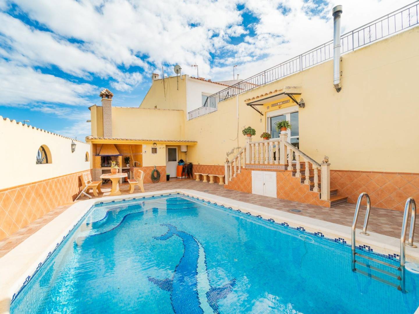 Entdecken Sie dieses Haus in der ruhigen und authentischen Gegend von Torremendo, Orihuela – eine privilegierte Naturlage, ideal für alle, die Wert auf Weite, Privatsphäre und hohe Lebensqualität legen. Das Anwesen bietet 145 m² Wohnfläche auf einem über 300 m² großen Grundstück und besticht durch eine äußerst funktionale Raumaufteilung mit fünf Schlafzimmern , drei Badezimmern und einem Gäste-WC , eines davon en suite . Im Erdgeschoss befinden sich zwei Wohn-Esszimmer , ein Schlafzimmer mit Bad en suite , eine voll ausgestattete neue Küche , ein Hauswirtschaftsraum, ein zweites Badezimmer und eine Terrasse mit Zugang zum Solarium , von dem aus man einen weiten Blick auf die umliegende Naturlandschaft genießt. Das Obergeschoss umfasst vier geräumige Schlafzimmer und ein drittes Badezimmer. Die optimale Ost-West-Ausrichtung sorgt den ganzen Tag über für viel Tageslicht . Draußen erwarten Sie eine 30 m² große Terrasse , ein privater Pool mit Dusche und ein Grillplatz – perfekt zum Genießen zu jeder Jahreszeit. Das Anwesen befindet sich in perfektem Zustand und ist sofort bezugsfertig. Neu eingebaute Doppelglasfenster sorgen für optimalen Wärme- und Schallschutz. Es verfügt über eine private Garage für zwei Autos und einen Abstellraum . Da keine Gemeinschaftsgebühren anfallen, genießen Sie absolute Unabhängigkeit. In idyllischer, ländlicher Lage, nahe dem Stausee La Pedrera und nur 20 Minuten von der Costa Blanca entfernt , ist diese Immobilie ideal als Hauptwohnsitz , Zweitwohnsitz oder Kapitalanlage .