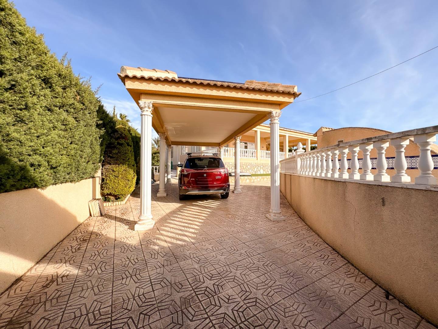 Das Anwesen verfügt über einen privaten, 5 x 10 Meter großen Swimmingpool , umgeben von einem angelegten Garten mit automatischer Bewässerungsanlage und Bereichen, die ganzjährig zum Genießen des mediterranen Klimas einladen. Zudem bietet es eine private Tiefgarage für Sicherheit und Komfort.