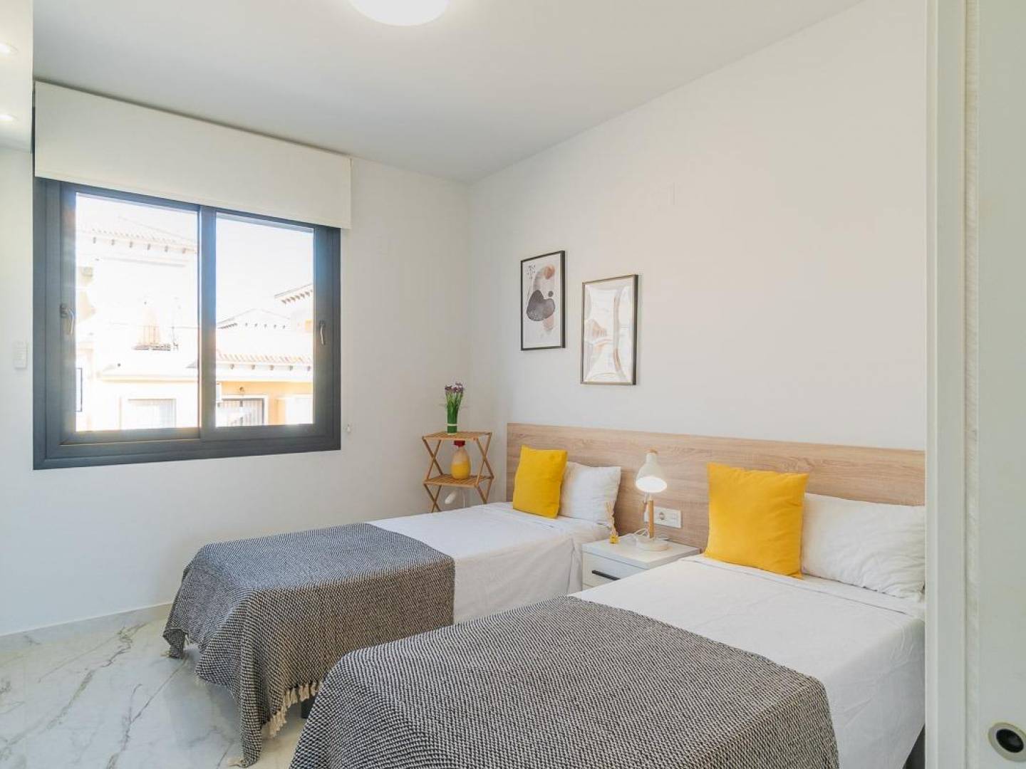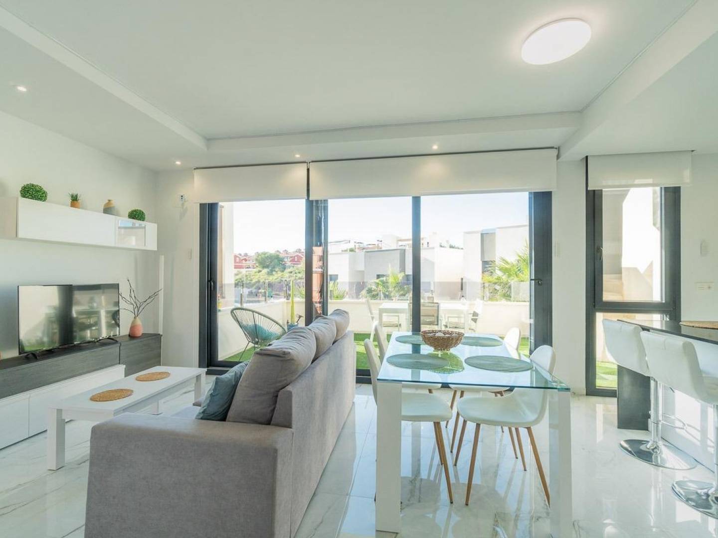 Entdecken Sie dieses außergewöhnliche Bungalow-Apartment in oberster Etage in der prestigeträchtigen Gegend PAU 26, Orihuela Costa, wo modernes Design, Komfort und Lebensqualität perfekt miteinander verschmelzen.~~Diese neuwertige Immobilie aus dem Jahr 2022 verfügt über 76 m2 Wohnfläche, eine funktionale Raumaufteilung und eine hervorragende Südausrichtung, die den ganzen Tag über für viel natürliches Licht sorgt.~~Der Zugang erfolgt über eine private und exklusive Wohnanlage mit nur 24 Einheiten, die Ruhe, Privatsphäre und ein gehobenes Wohnambiente garantiert. Beim Betreten empfängt Sie ein helles und großzügiges Wohn-Esszimmer mit moderner offener Küche. Von hier aus gelangen Sie auf den 12 m2 großen Balkon, ausgestattet mit elektrischer Markise und Kunstrasen, ideal, um das mediterrane Klima das ganze Jahr über zu genießen.~Die Immobilie verfügt außerdem über einen Hauswirtschaftsraum, zwei geräumige Doppelschlafzimmer und zwei voll ausgestattete Badezimmer, beide mit Fußbodenheizung, die höchsten Wohnkomfort bieten.~~Vom Balkon führt eine private Treppe zum Highlight der Immobilie: einem beeindruckenden privaten Solarium von ca. 71 m2, ausgestattet mit Kunstrasen und Markisen, perfekt für einen exklusiven Chill-out-Bereich oder entspannte Stunden unter der Sonne.~~Zu den Ausstattungsmerkmalen gehören Feinsteinzeugböden, Fliegengitter an allen Fenstern, Sicherheitseingangstür, elektrische Markise auf dem Balkon sowie eine manuelle Markise an der Pergola des Solariums.~~Die Immobilie wird inklusive privatem Stellplatz und abgeschlossenem Abstellraum verkauft.~~Die Wohnanlage bietet einen wunderschönen Gemeinschaftspool, sehr gepflegte Grünanlagen und hochwertige Gemeinschaftsbereiche ein echtes Luxusambiente.~~Nur 3,5 km vom Meer entfernt, befinden sich die beliebten Strände La Zenia und Playa Flamenca in unmittelbarer Nähe, bekannt für ihre kristallklaren Gewässer und hervorragende Infrastruktur.~~Dank der Nähe zu renommierten Golfplätzen ist diese Immobilie zudem eine sehr gefragte Ferieninvestition mit hohem Vermietungspotenzial.~~ Eine Immobilie, die Exklusivität, Komfort und mediterranes Lebensgefühl vereint.~Eine einmalige Gelegenheit kontaktieren Sie uns noch heute.~Preis: 349.000 €~Steuern und Kaufnebenkosten nicht inbegriffen (gemäß geltender Gesetzgebung). Eine Aufstellung der zusätzlichen Kosten wird vor der Reservierung zur Verfügung gestellt.