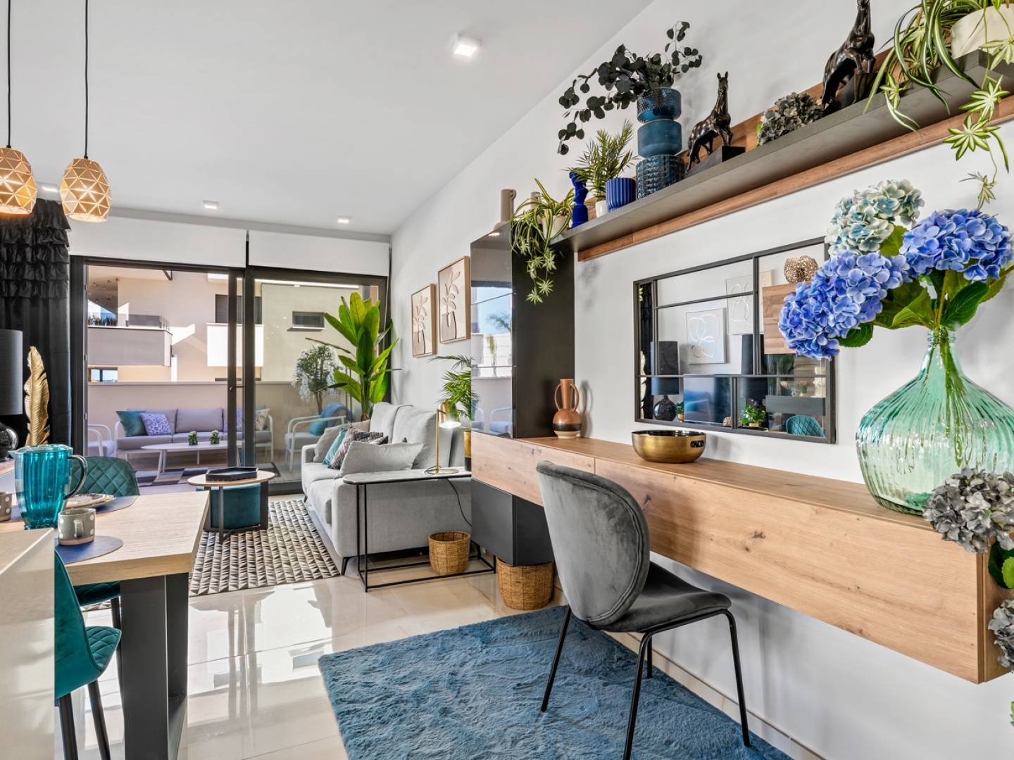 In einer der begehrtesten Lagen von Playa Flamenca an der Orihuela Costa präsentieren wir Ihnen diese exklusive Eck-Erdgeschosswohnung in einem erst im letzten Jahr fertiggestellten Wohnkomplex. Eine einzigartige Gelegenheit für alle, die Wert auf Qualität, Komfort und eine strategisch günstige Lage an der Costa Blanca legen. Nur wenige Minuten vom Strand entfernt und umgeben von allen Annehmlichkeiten Restaurants, Bars, Apotheken, Freizeitangeboten für die ganze Familie und dem renommierten Einkaufszentrum La Zenia Boulevard vereint diese Immobilie mediterranen Lebensstil mit exzellentem Investitionspotenzial. Die Wohnung verfügt über 3 Schlafzimmer und 2 Badezimmer mit einem funktionalen Grundriss und hochwertiger Ausstattung. Das Hauptschlafzimmer hat ein eigenes Badezimmer mit Badewanne. Das zweite Badezimmer ist separat und mit einer Dusche ausgestattet. Beide Badezimmer verfügen über Fußbodenheizung für ganzjährigen Komfort. Alle Schlafzimmer sind mit Einbauschränken ausgestattet. Die Küche ist komplett ausgestattet, und die Immobilie wird möbliert verkauft (Dekorationen ausgenommen), sodass Sie sofort einziehen oder ohne zusätzliche Investitionen vermieten können. Das Gesamtgefühl ist großzügig, hell und komfortabel ideal als Hauptwohnsitz, Zweitwohnsitz oder Kapitalanlage in einer der begehrtesten internationalen Gegenden der Costa Blanca. Der wahre Mehrwert dieser Immobilie liegt in ihrer spektakulären 115 m² großen Eckterrasse. Dank ihrer Ecklage bietet sie mehr Privatsphäre und ein großzügiges Raumgefühl. Von der Terrasse aus genießen Sie einen teilweisen Meerblick und direkten Zugang zum Garten und zum Gemeinschaftspool. Sie bietet den perfekten Rahmen für die Gestaltung verschiedener Außenbereiche: eine Chill-out-Zone, einen Essbereich im Freien oder sogar einen ganz persönlichen Rückzugsort. Eine Erdgeschosswohnung mit einer so großen Terrasse in Playa Flamenca zu finden, ist selten diese Immobilie ist daher eine besonders attraktive Gelegenheit. Die Immobilie befindet sich in einer luxuriösen, geschlossenen Wohnanlage mit großzügigen Gemeinschaftsbereichen: GemeinschaftspoolGrillplatzKinderspielplatzFitnessstudio mit modernsten GerätenSaunaWeitläufige, gepflegte Grünflächen Im Preis inbegriffen sind außerdem ein Doppelparkplatz und ein großer Abstellraum für zusätzlichen Komfort und Stauraum. Diese Immobilie bietet alle aktuell gefragten Merkmale: Neubau, großzügiger Außenbereich, hochwertige Ausstattung, Strand- und Einkaufsnähe sowie eine etablierte Lage mit hoher Nachfrage sowohl für die Eigennutzung als auch für Langzeit- und Ferienvermietung.